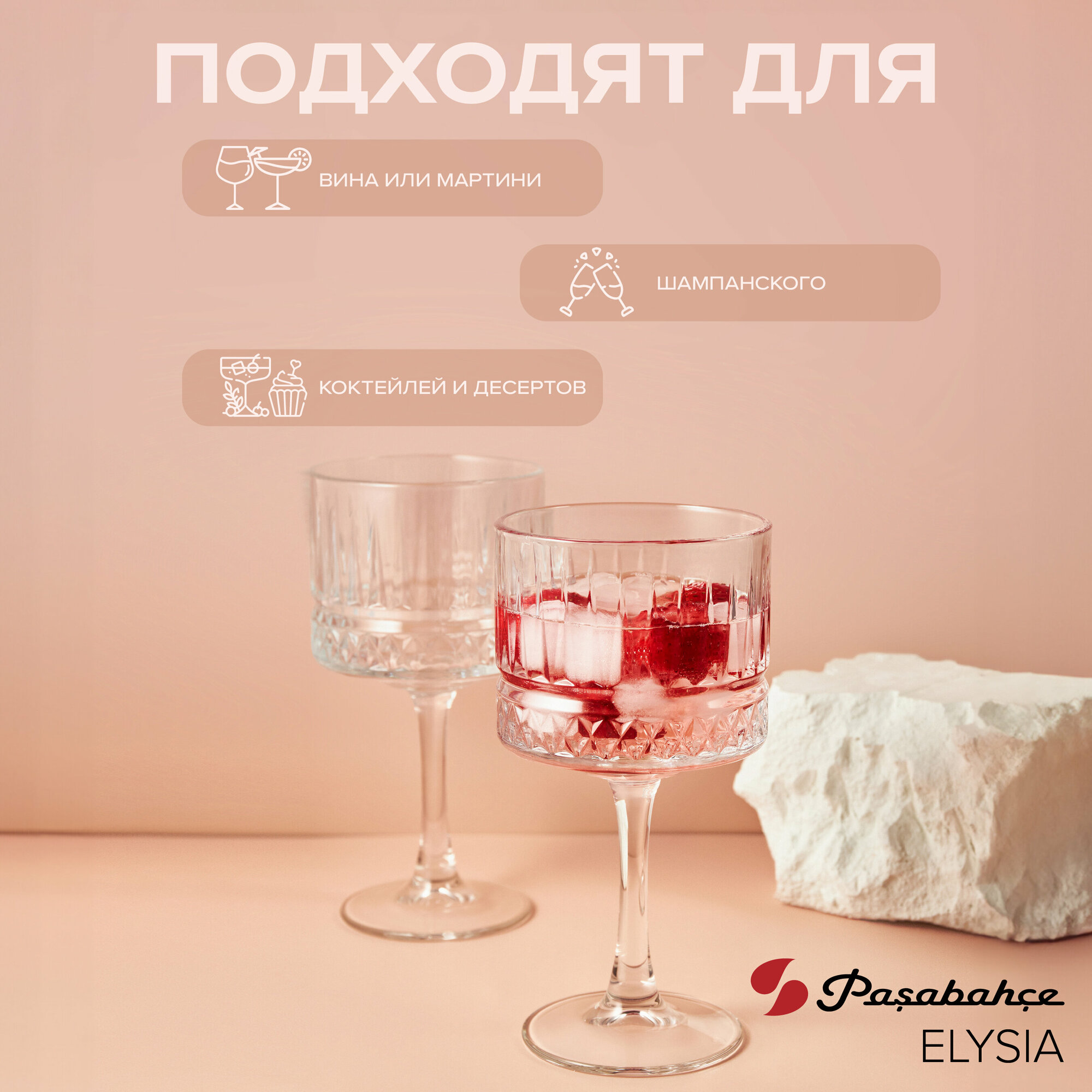 Набор бокалов Elysia, Pasabahce, стекло, 260мл, 2шт, для коктейлей и шампанского
