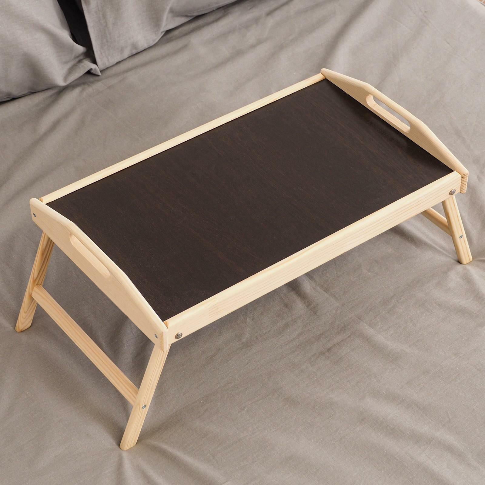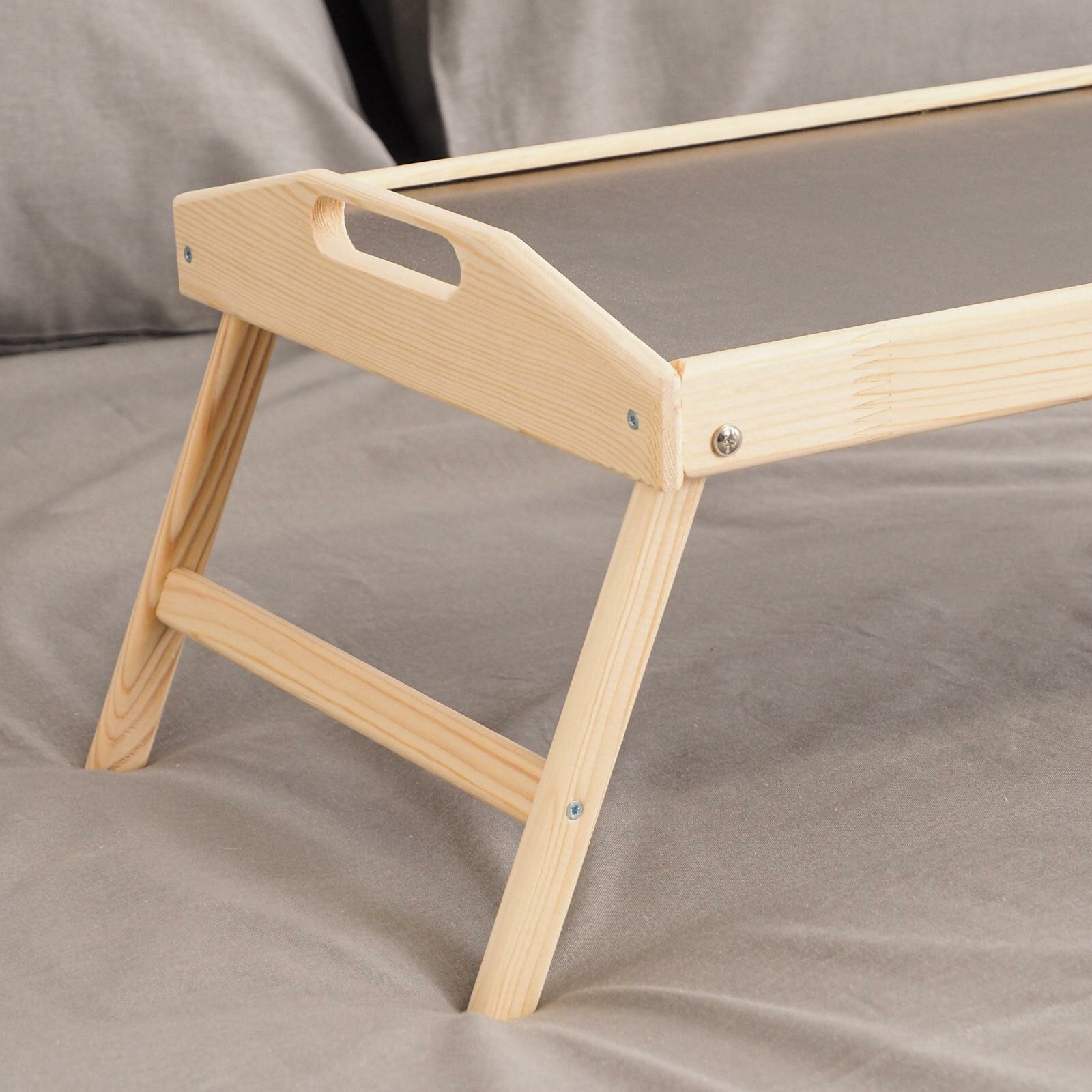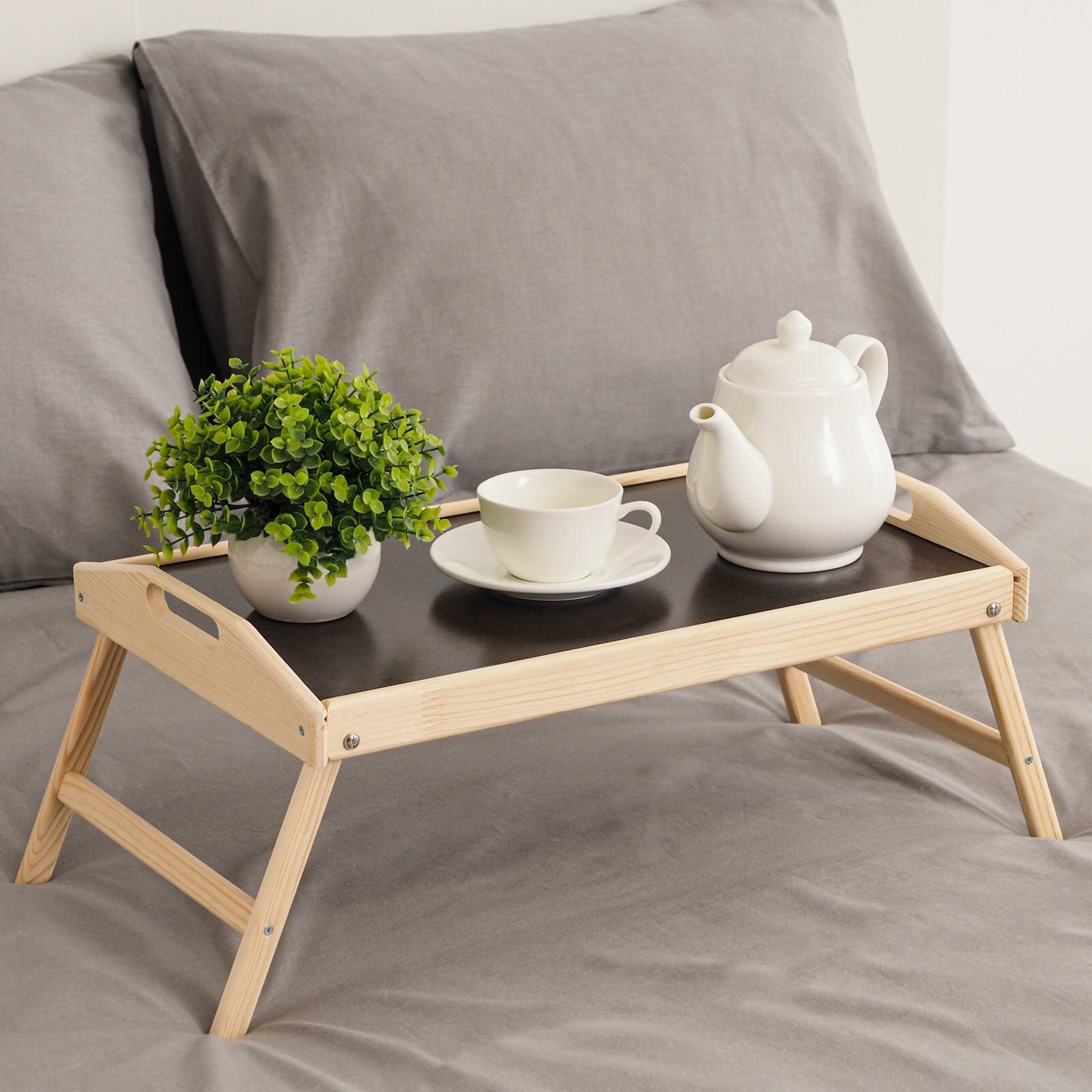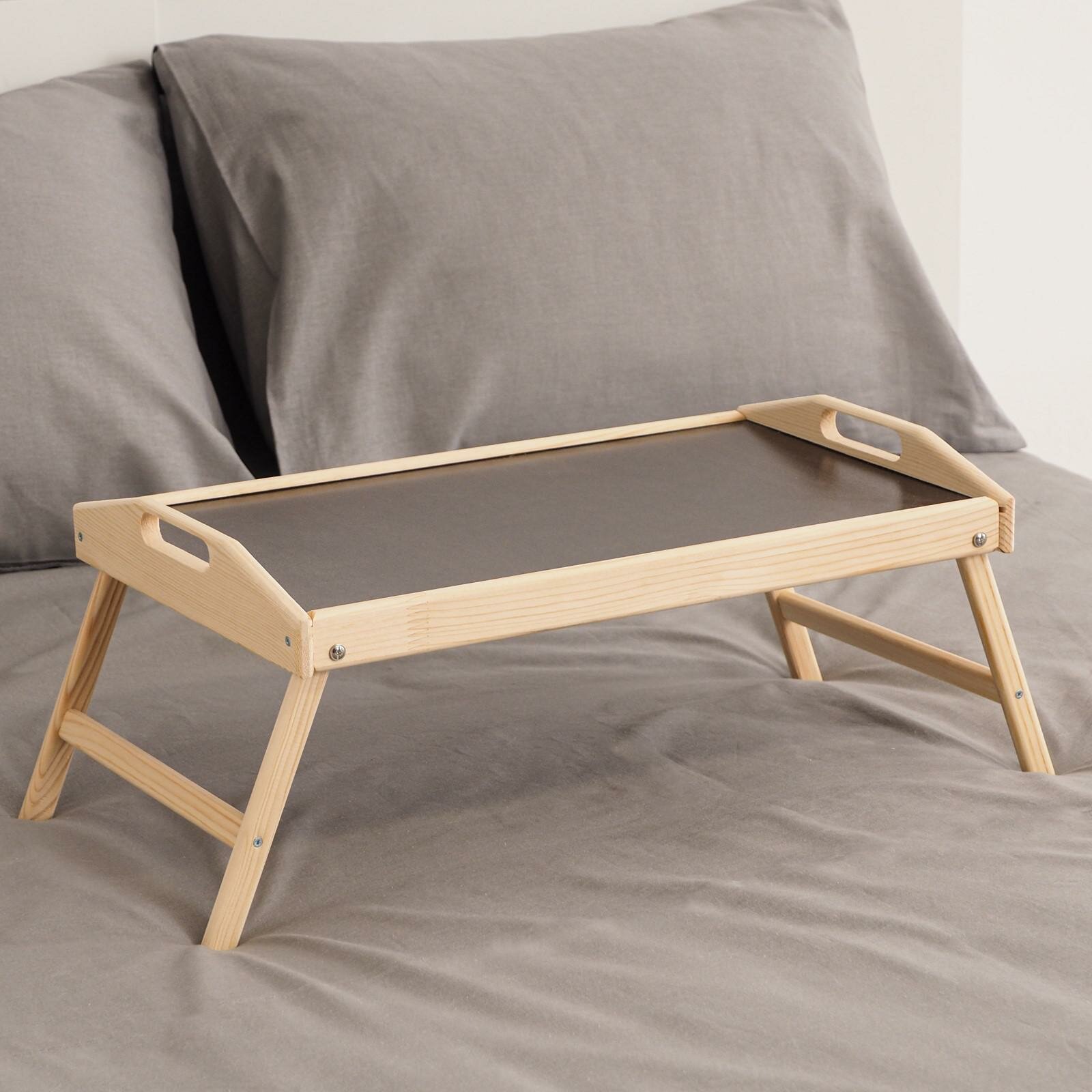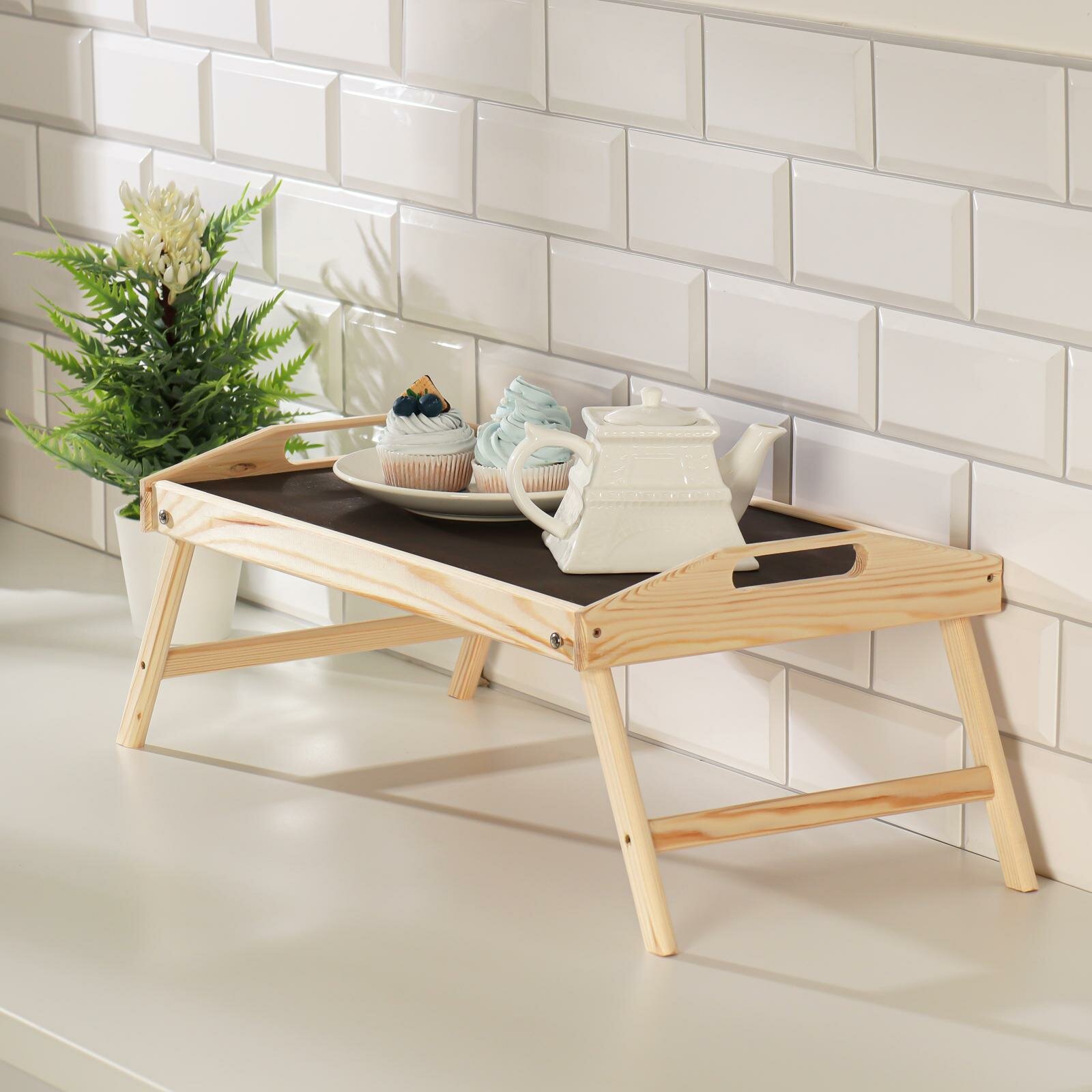 | Дополнительная информация | Стильный и компактный столик с небольшими бортиками по периметру позволит порадовать любимых завтраком в постель. Благодаря складным ножкам изделие легко переносить и удобно хранить. Поднос подходит не только для завтрака в постель — если поставить на столик ноутбук, можно смотреть кино или работать. |