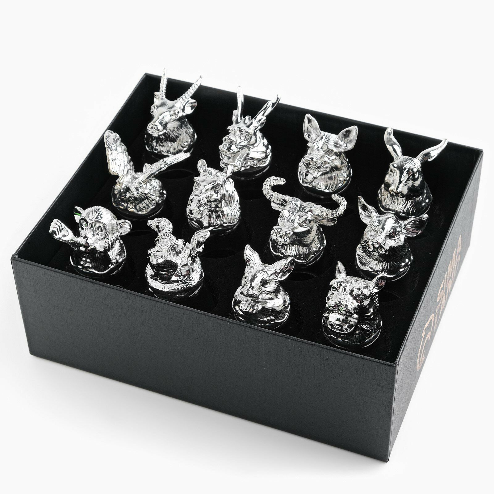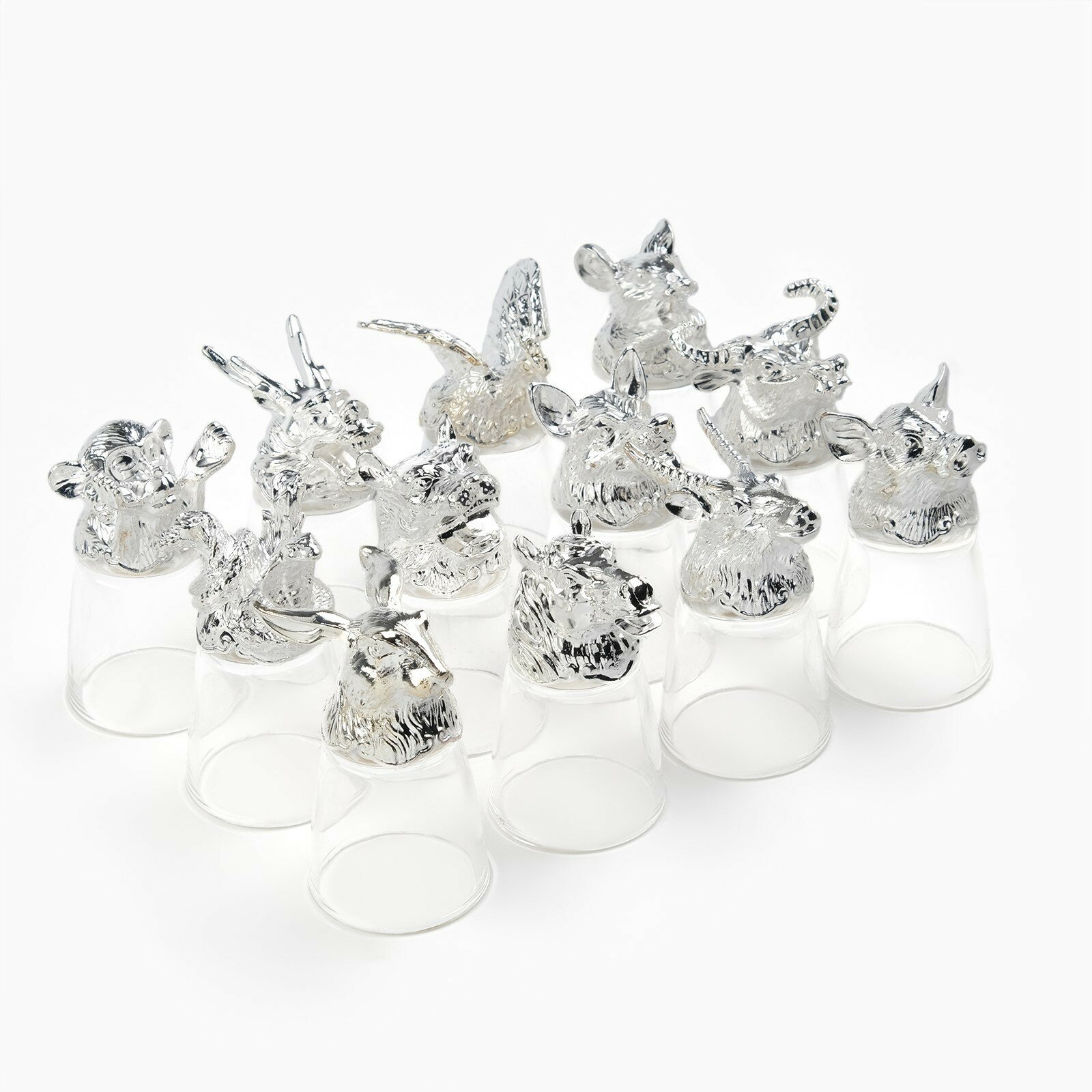 | Дополнительная информация | Набор рюмок-перевертышей высокого качества с головами животных — оригинальный подарок для охотника, рыболова, а также будет незаменим на большом дружеском застолье или на охотничьем привале. Набор выполнен под двенадцать знаков зодиака, каждый из которых принадлежит определенному животному. Стопки будут прекрасно сочетаться с любой сервировкой и могут использовать как для повседневного использования, так и для особых случаев. Кроме того, стеклянные прозрачные рюмки легко моются и не подвергаются коррозии. |