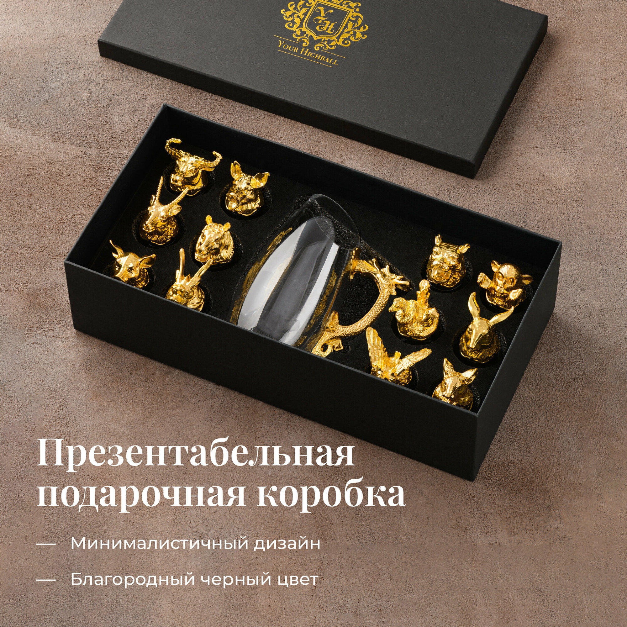 Подарочные рюмки перевертыши, Your Highball, Стопки стеклянные для водки, Набор 12 шт, Черненое золото