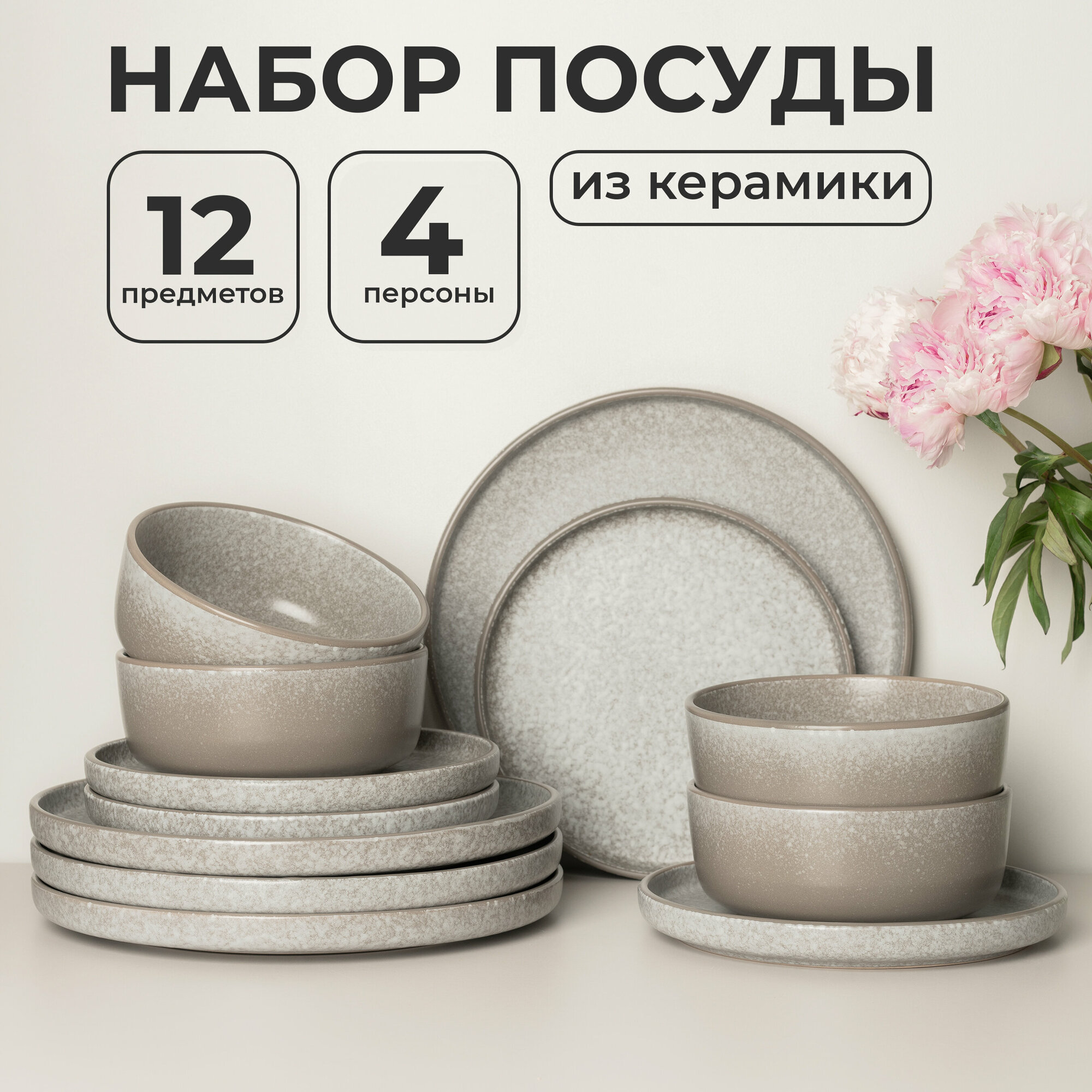 Купить Набор столовой посуды 4 персоны Atmosphere of Art "Terre" /керамика/ 12 предметов/ серо-бежевый