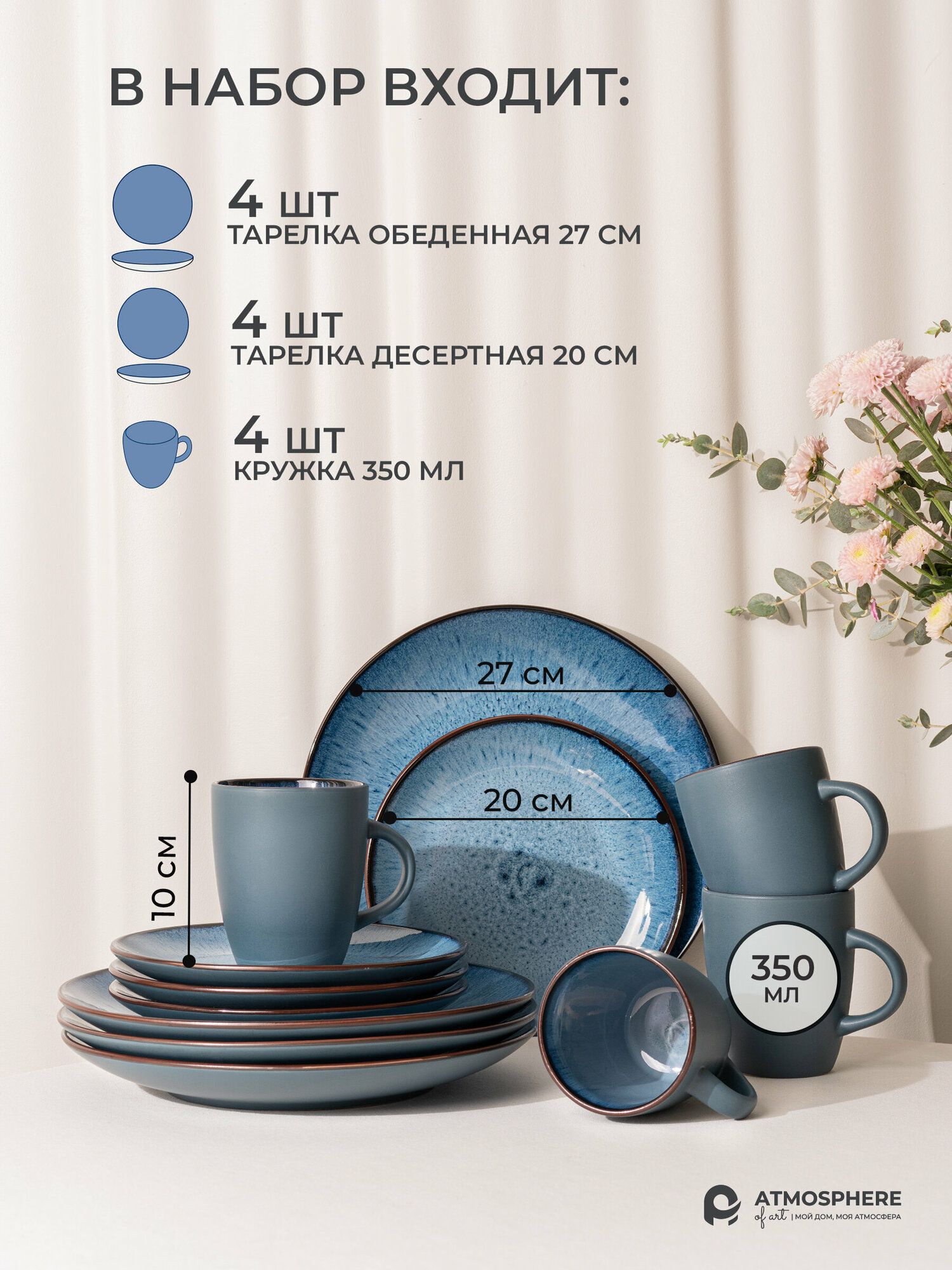 Купить Набор посуды керамической с кружками Atmosphere of Art "Azure" - 12 предметов, синий