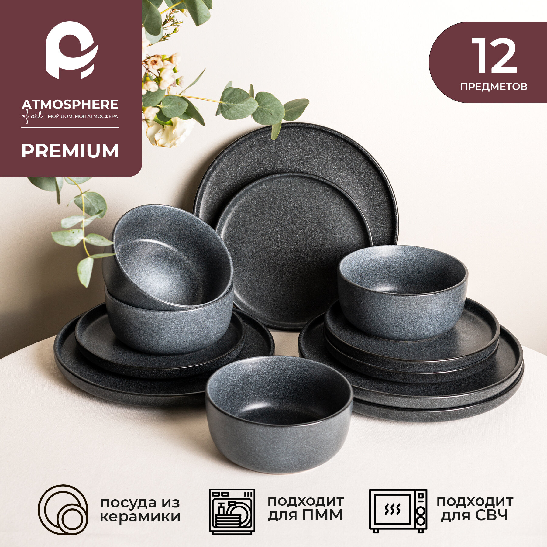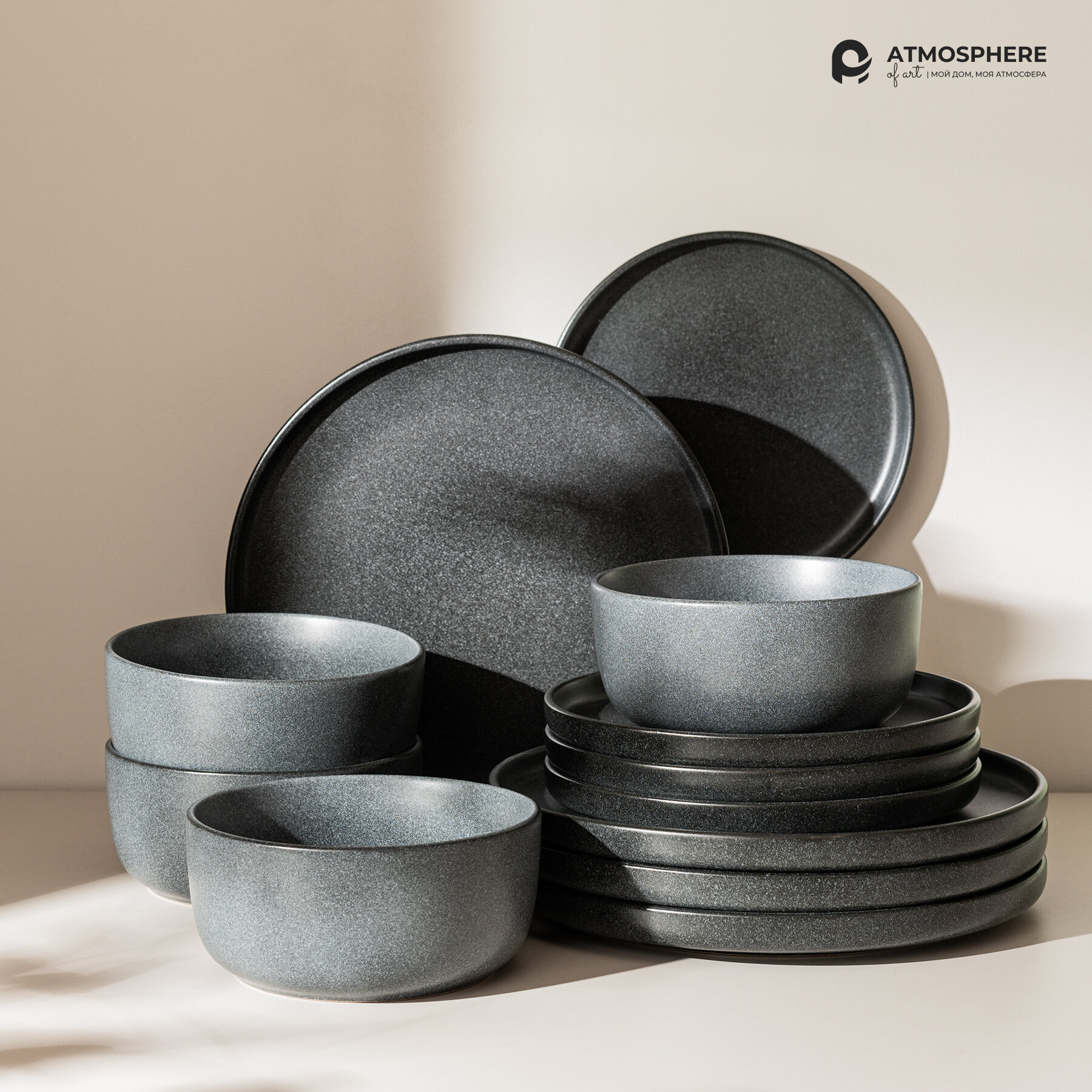 Купить Набор тарелок на 4 персоны Atmosphere of Art "Stone" /сервиз обеденный/ черный графит/ 12 предметов