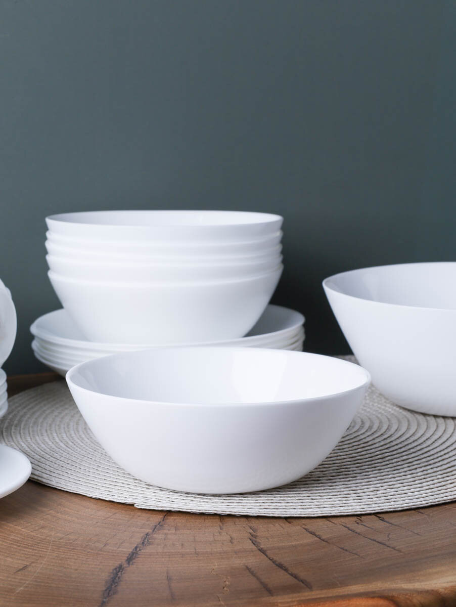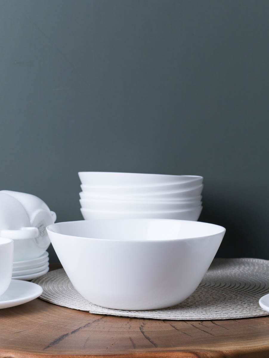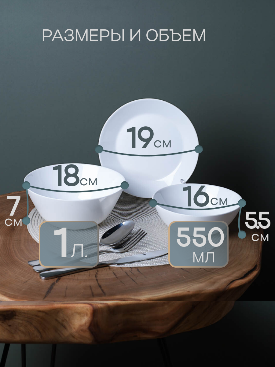 | Комплектация | 6шт глубоких тарелок 500мл, 6шт плоских тарелок 19см, 1шт салатник 1 литр. |