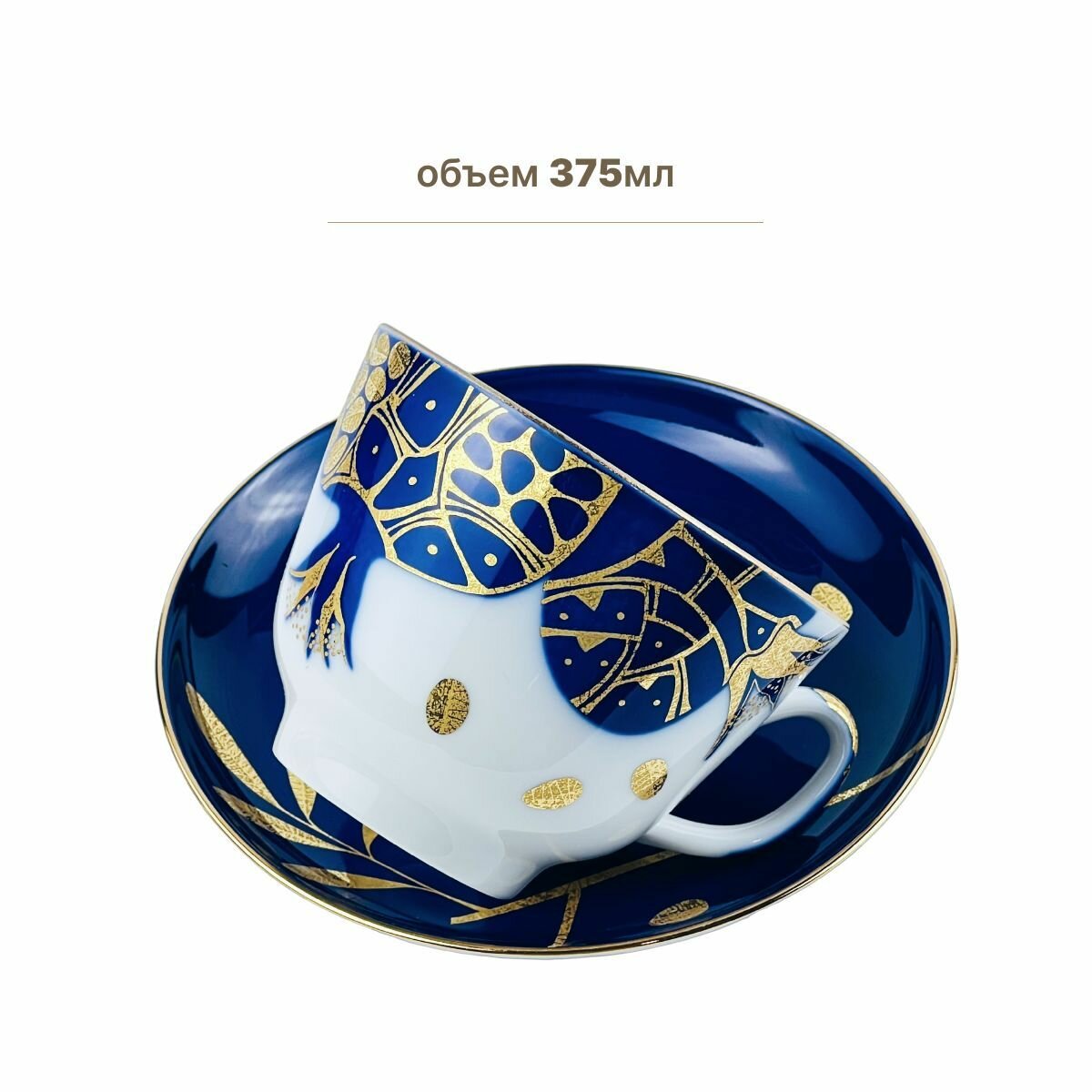 Чайная пара 375 мл. Форма "Подарочная", рисунок "Смоковница". Твердый фарфор. Чашка с блюдцем. Императорский фарфоровый завод ИФЗ ЛФЗ