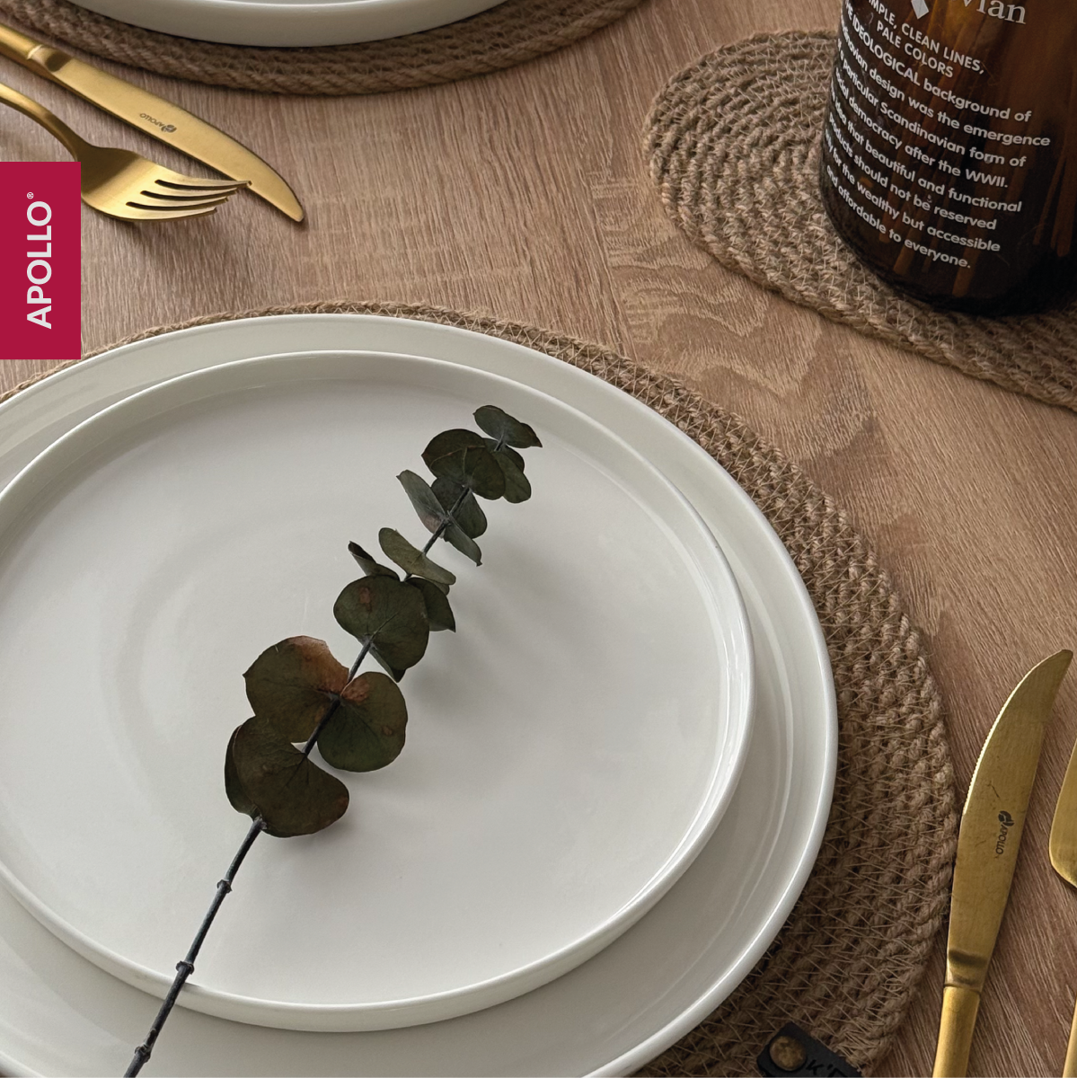 Тарелка обеденная сервировочная из костяного фарфора с бортиком APOLLO "Blanco" 26 см, 2 штуки