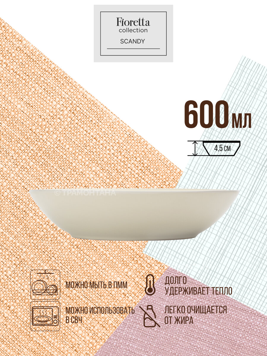 Тарелка суповая Fioretta La Belle Vie 400 мл, 1 штука, фарфоровая