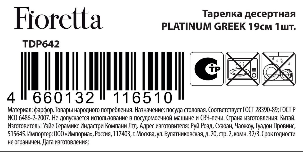 СохранитьТарелка десертная "PLATINUM GREEK" FIORETTA, 19см, фарфор, цвет белый интересное: