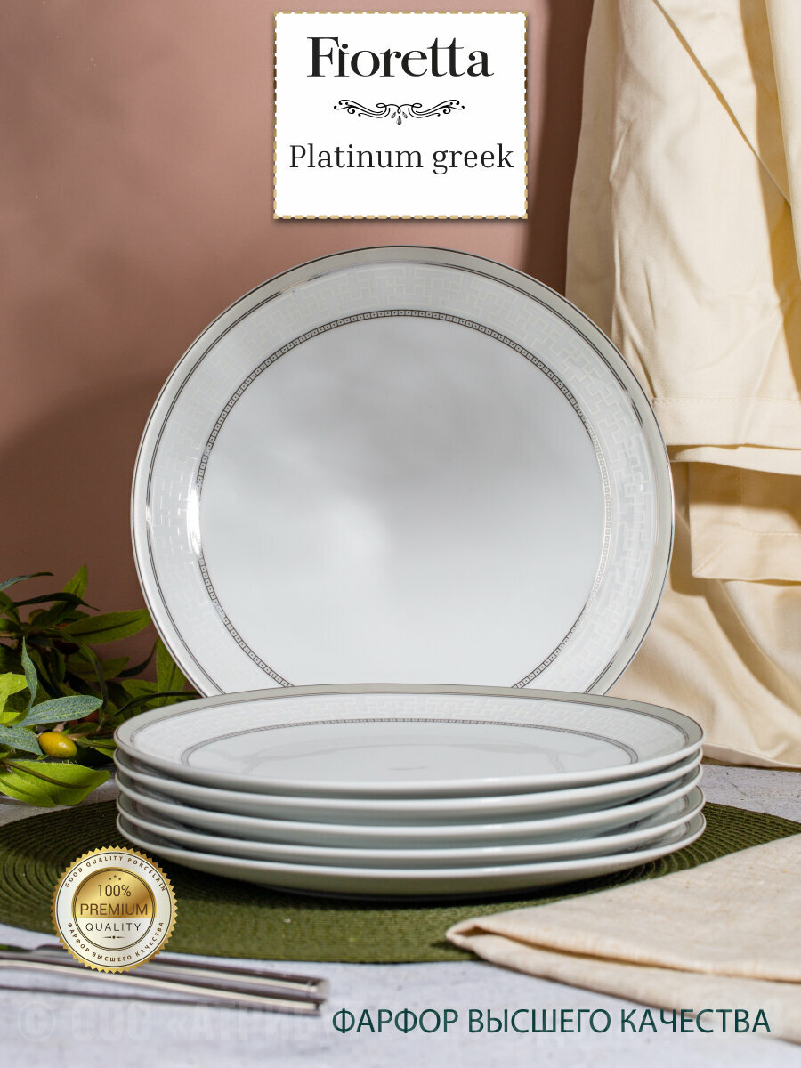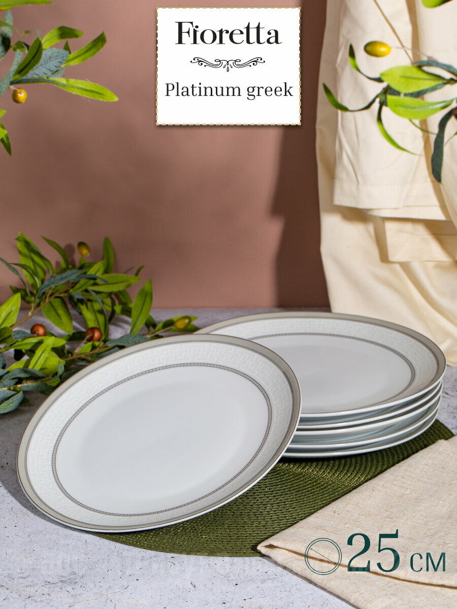 Купить Тарелка обеденная "PLATINUM GREEK" FIORETTA, 25см, фарфор, цвет белый