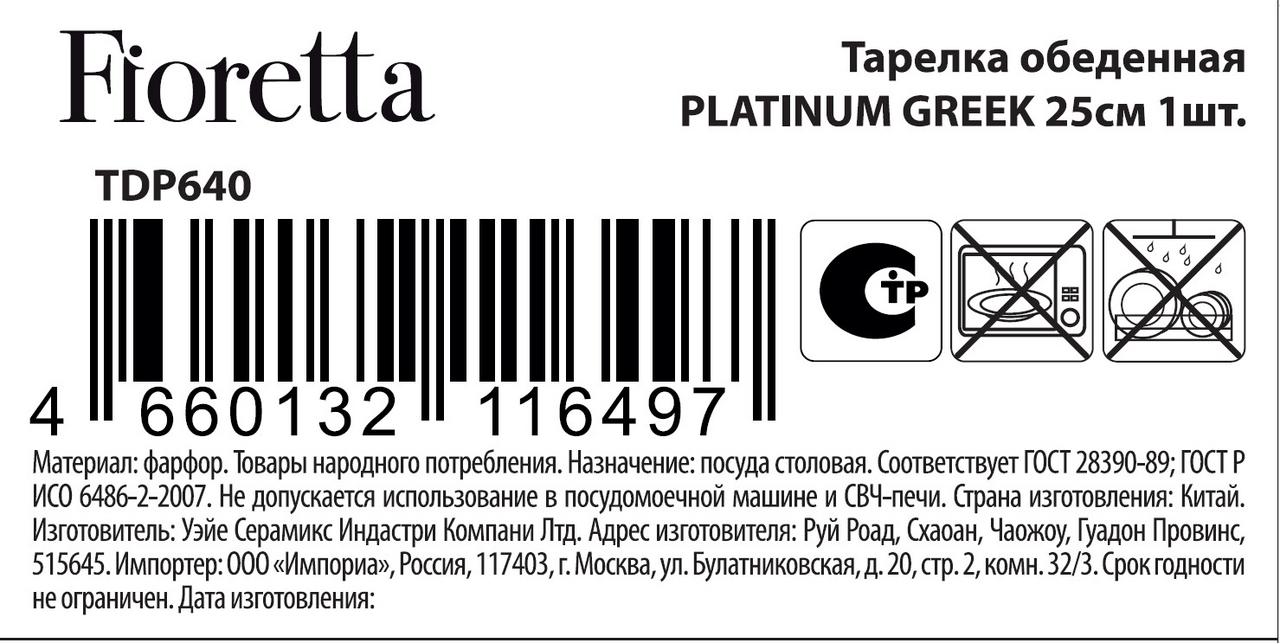 СохранитьТарелка обеденная "PLATINUM GREEK" FIORETTA, 25см, фарфор, цвет белый интересное:
