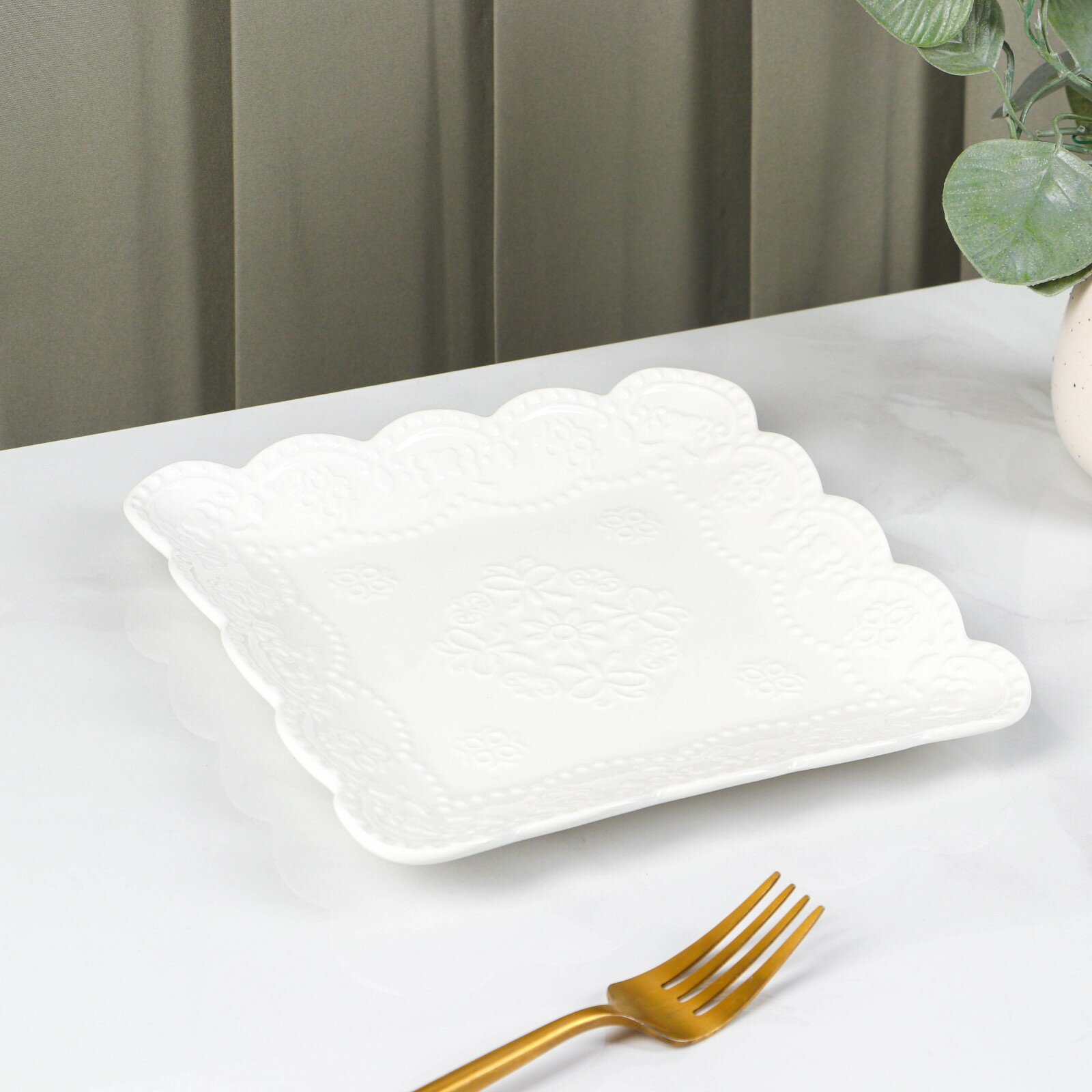 Купить Тарелка фарфоровая квадратная Доляна «Сьюзен», 20×20 см, цвет белый
