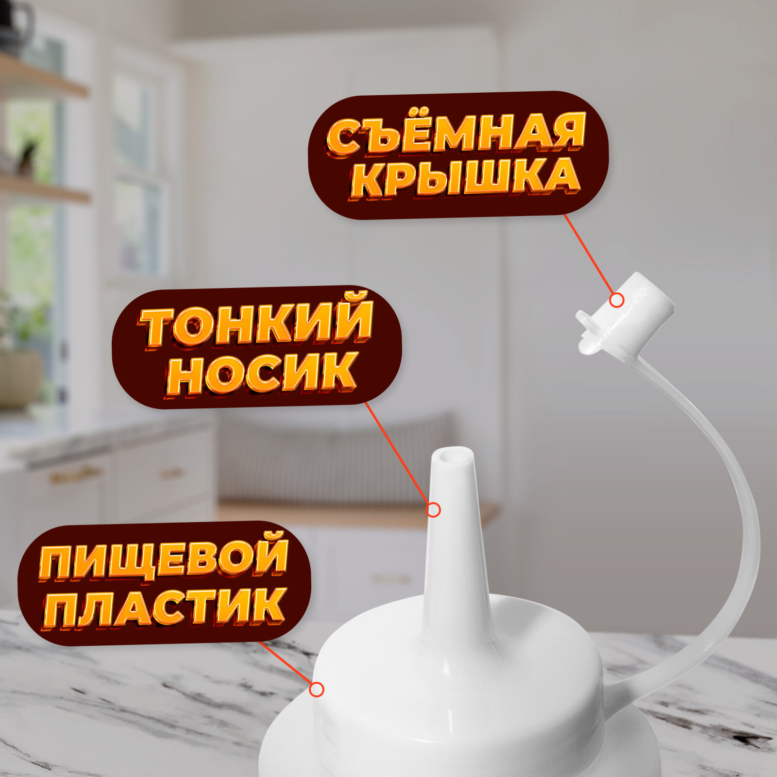Бутылка пластиковая для соуса, соусник с колпачком Доляна, 350 мл, 6×19 см, цвет белый интересное: