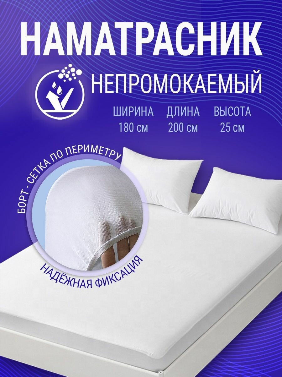 Наматрасник 180х200 непромокаемый на резинке, ОТК, белый
