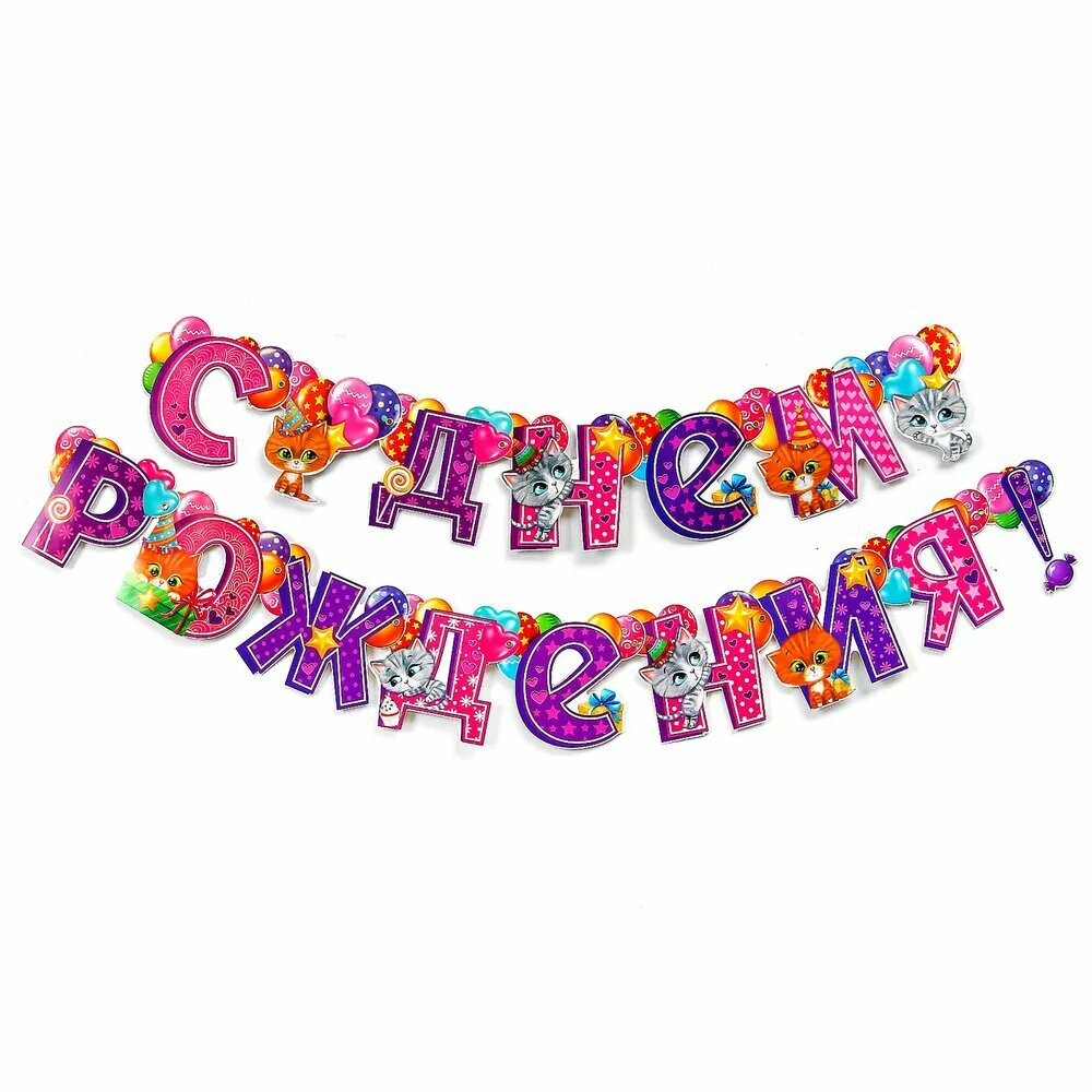 Купить Гирлянда на люверсах "С Днем Рождения!", котята, дл. 185 см, Страна Карнавалия