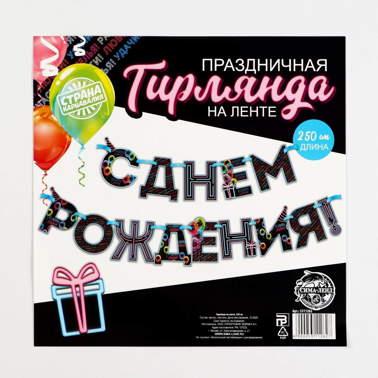 Гирлянда на ленте "С Днем Рождения!", размер: 250 см, Страна карнавалия