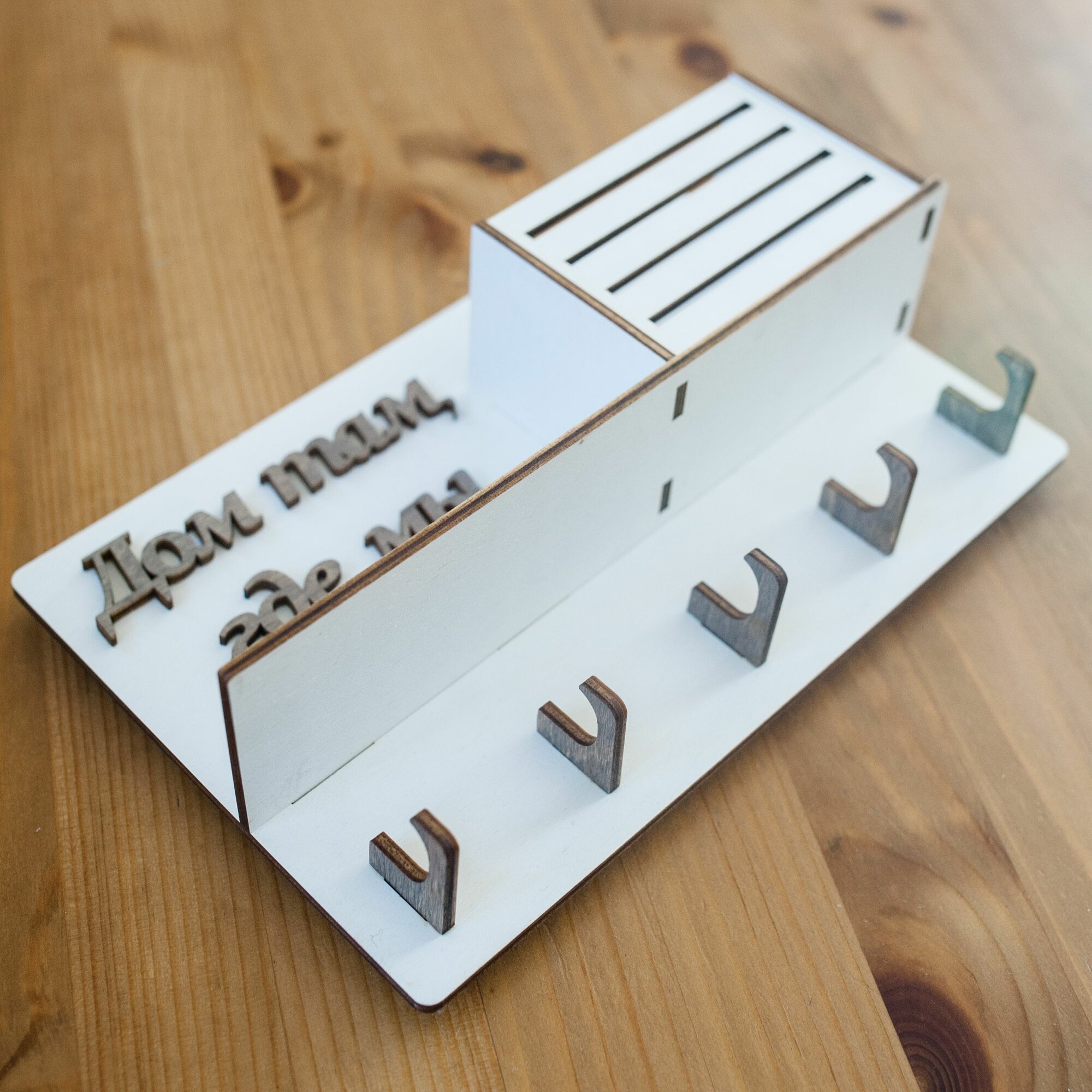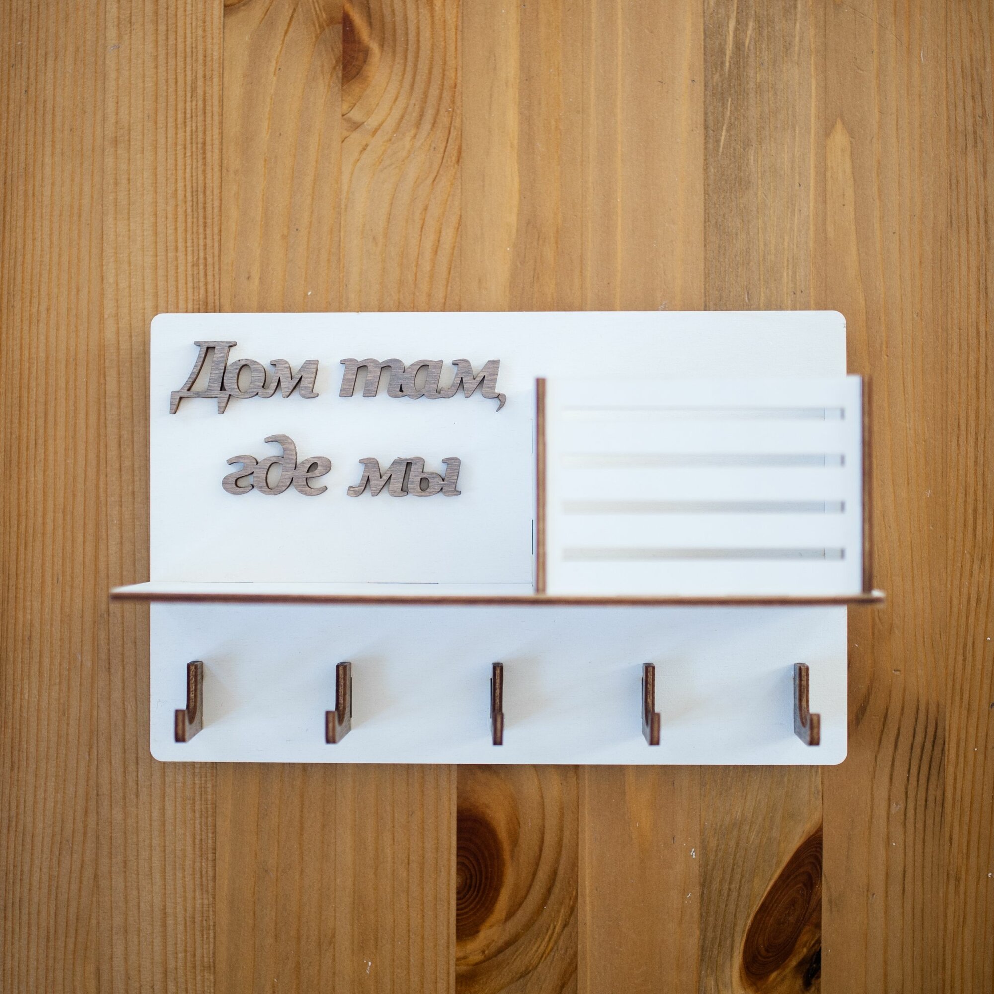 Купить Ключница настенная Bezusoff "Дом там, где мы", дерево, 5 крючков, 25x16x7 см