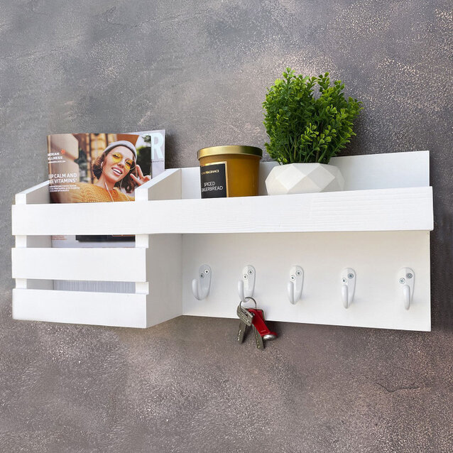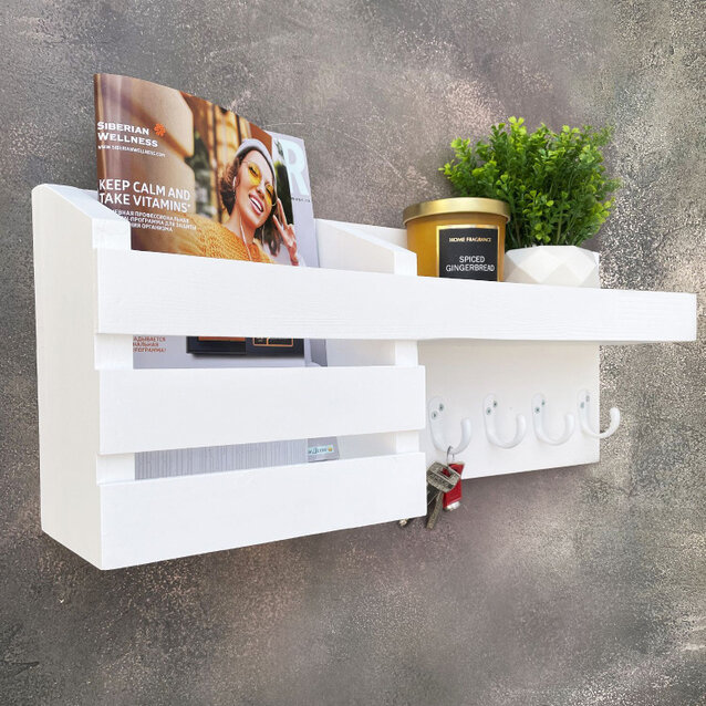 "Ключница Chiwoodo" - белая настенная ключница из дерева с полкой и органайзером