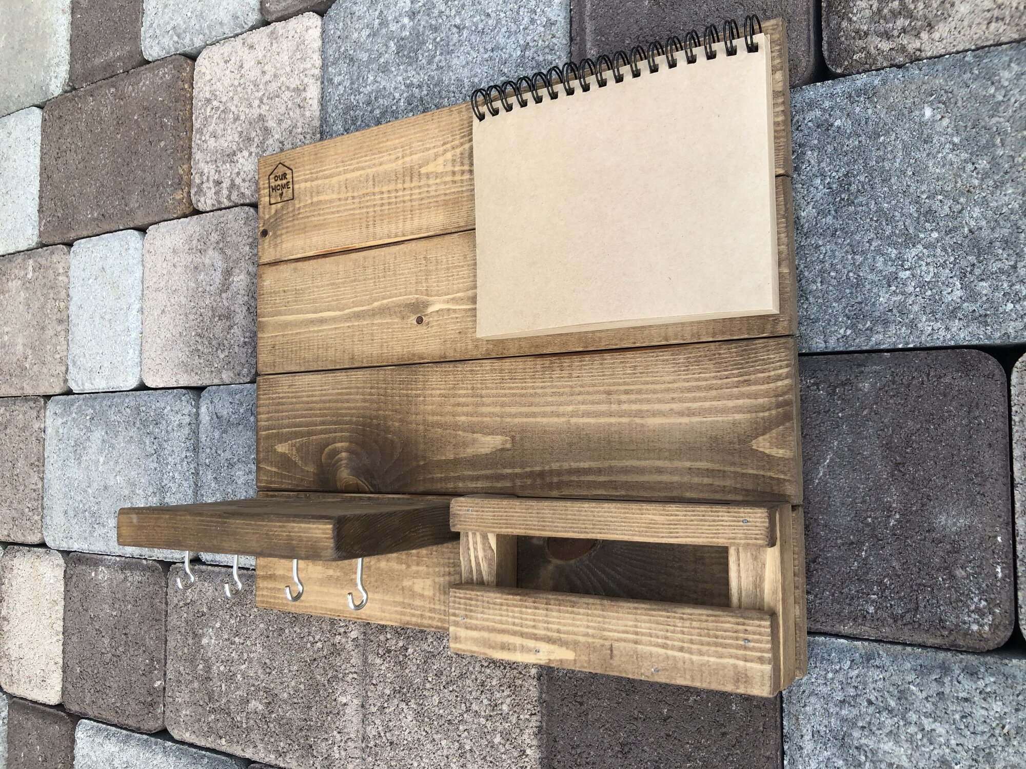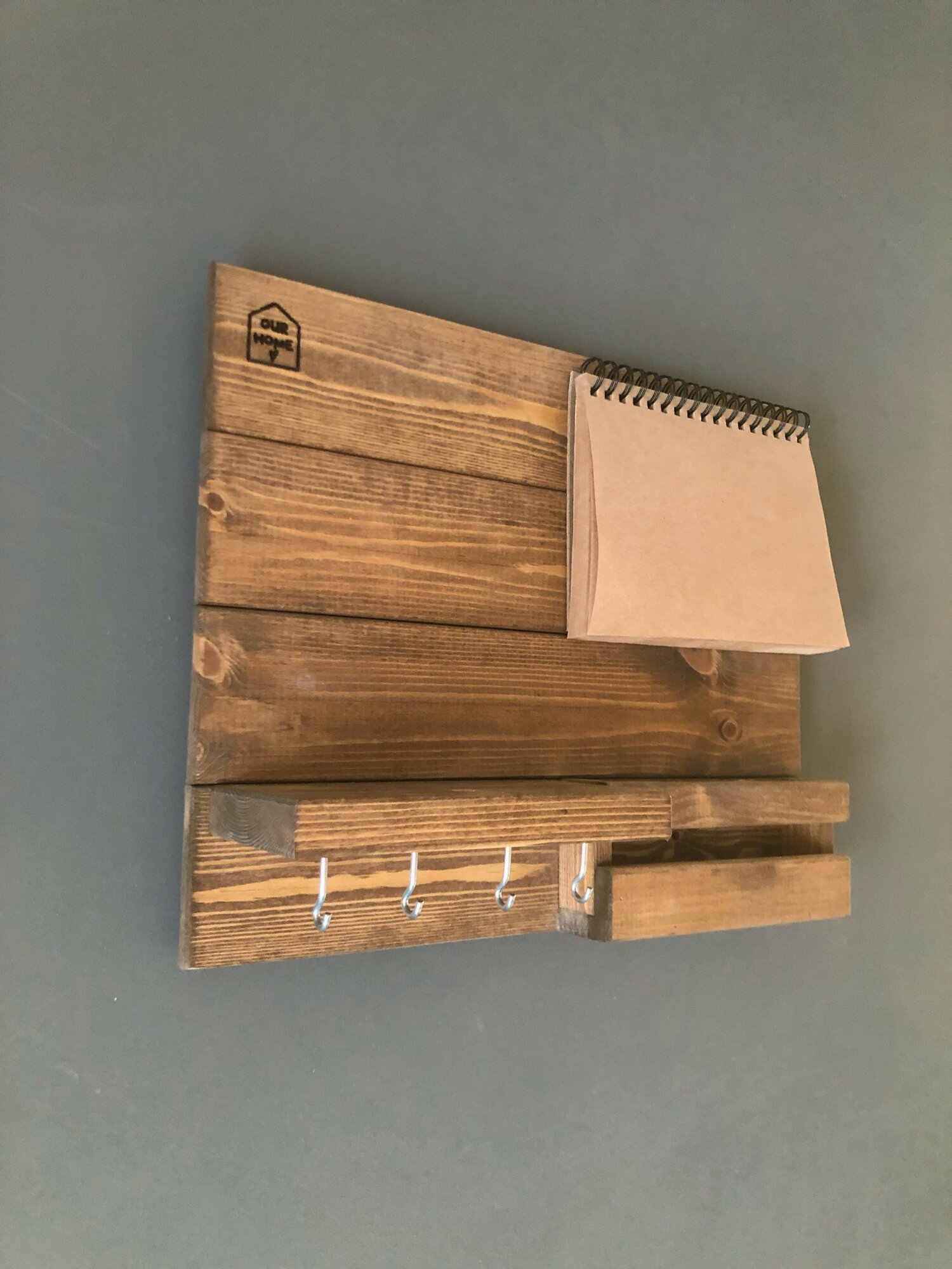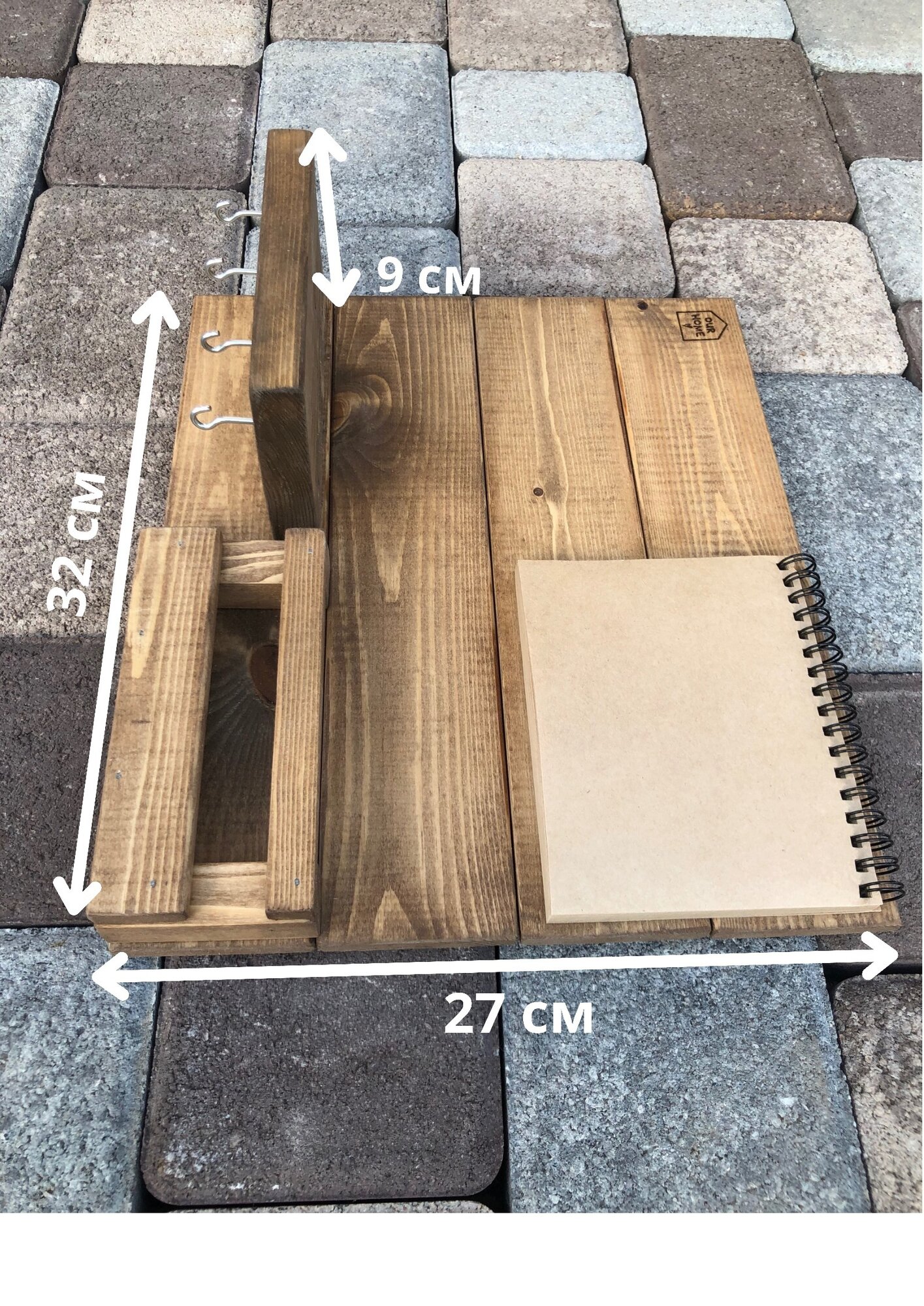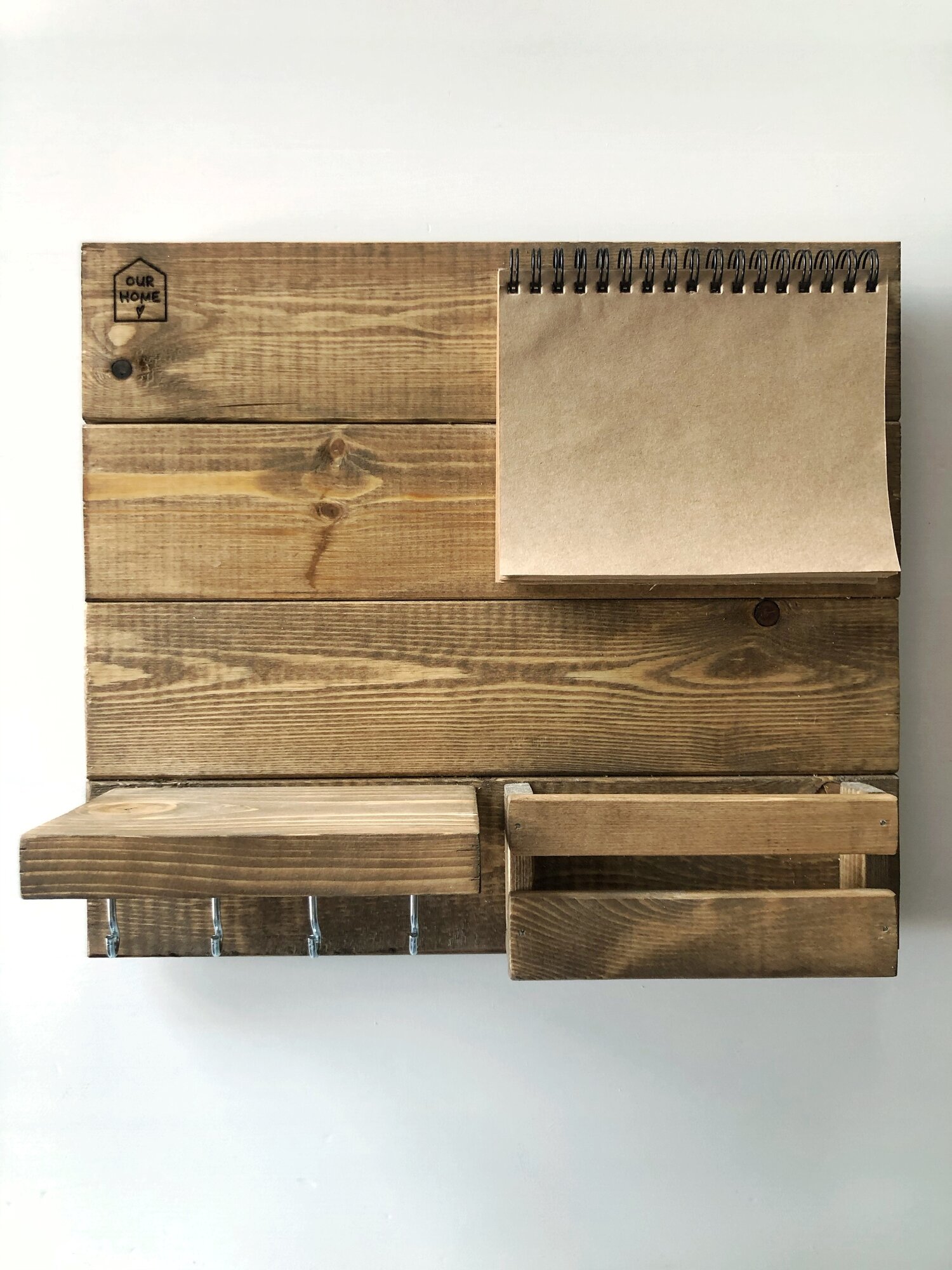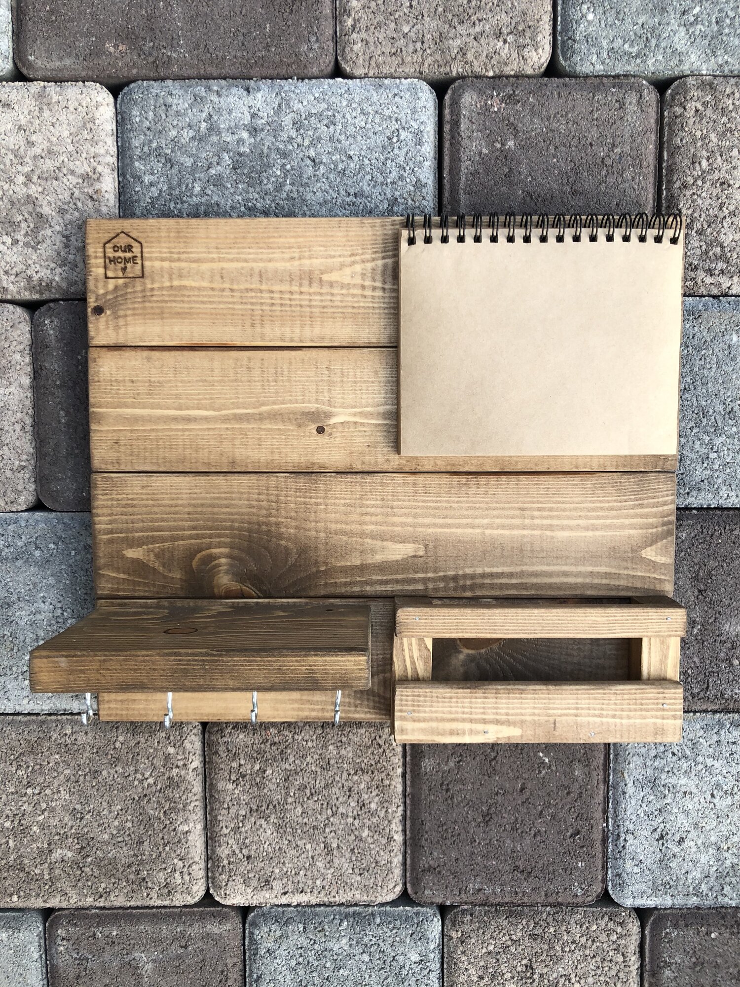 Купить Деревянная ключница настенная с полкой и блокнотом, 4 крючка