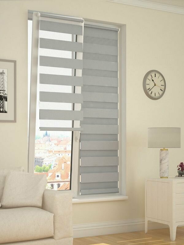 Рулонная штора День-Ночь Серая 100х170см Светонепроницаемость 70 % ORNETTA