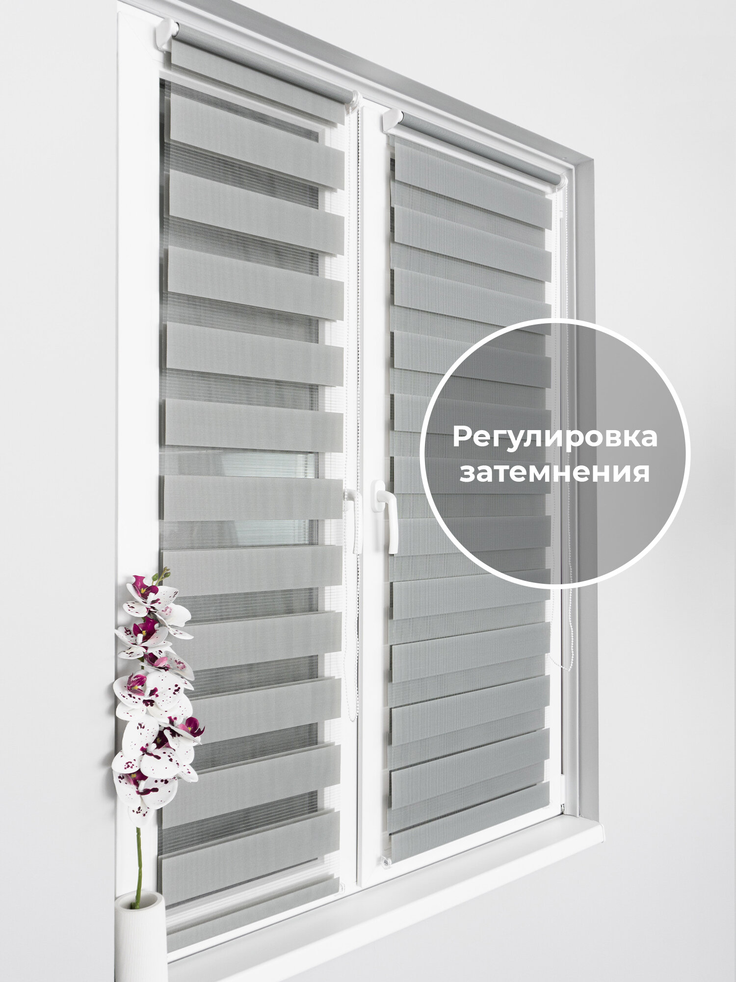 Рулонные шторы День-Ночь Серая 57х170 см, Светонепроницаемость 70 % ORNETTA