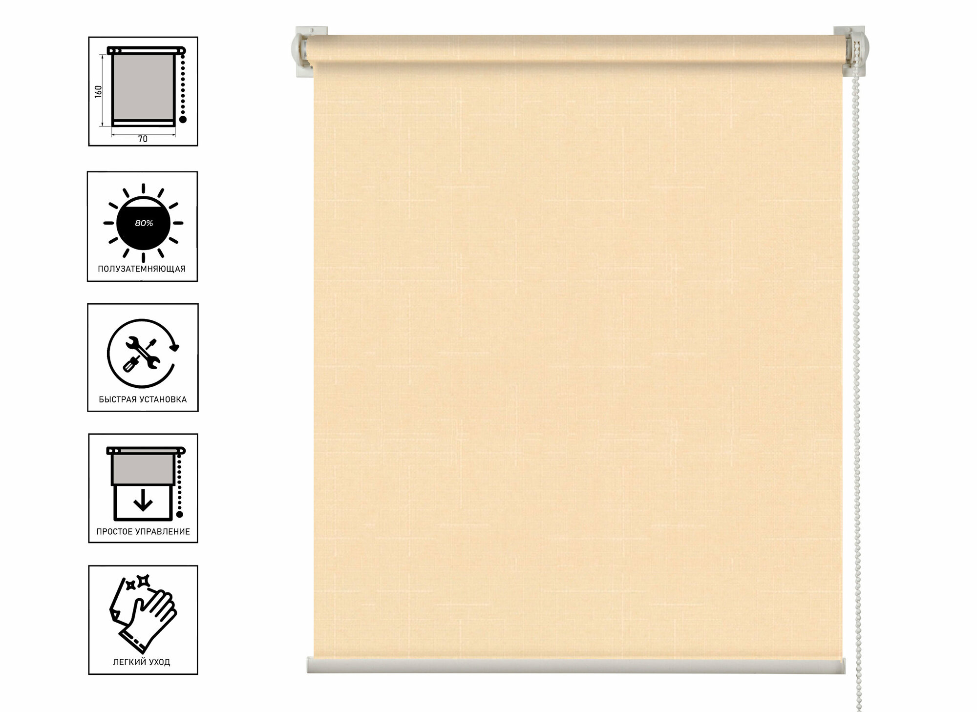 Рулонная штора Соло Светло-бежевый 70*160см