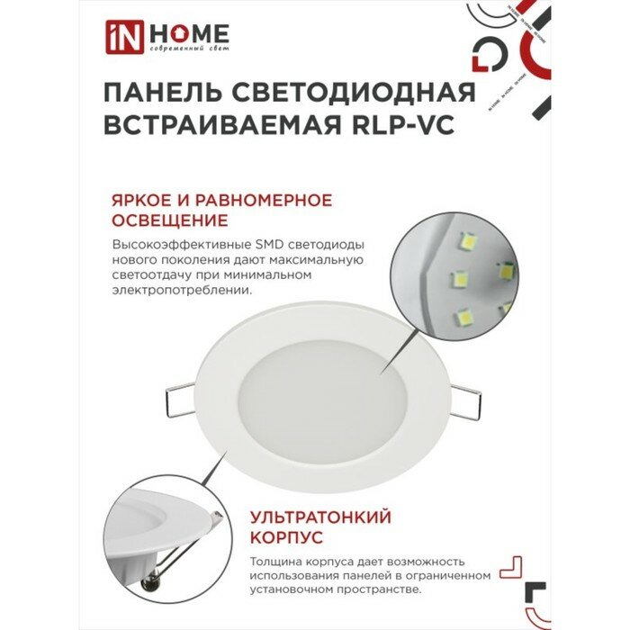Панель светодиодная IN HOME RLP-VC, 6 Вт, 230 В, 6500 К, 420 Лм, 95x30 мм, круглая, белая