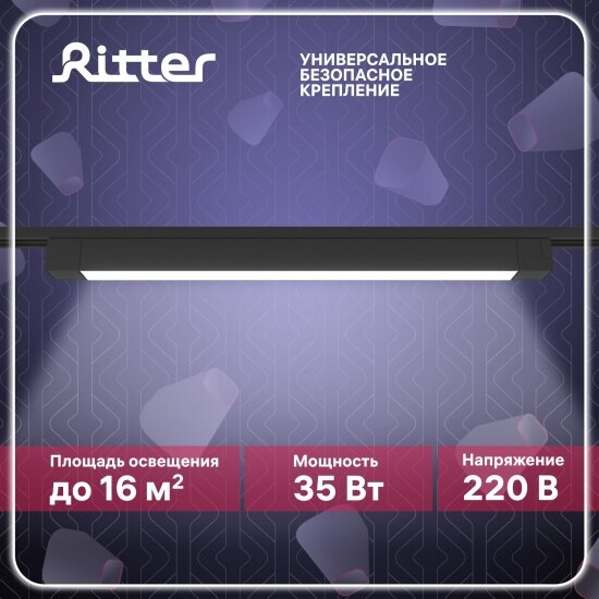 Трековый светильник Ritter Artline, 340х35х40, 20Вт, 1400Лм, 4000К, 230В, алюминий, черный, 59720 3,