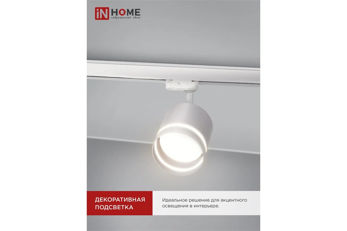 Светильник трековый TR-GU10-TL 6RW под лампу GU10 с подсветкой белый IN HOME