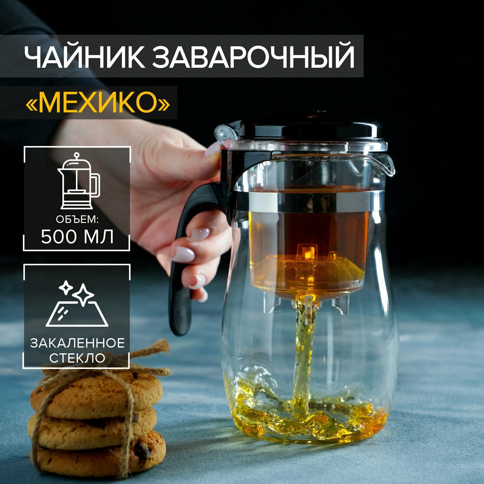 Купить Заварочный чайник "Мехико", 500 мл, пластиковое сито, стекло