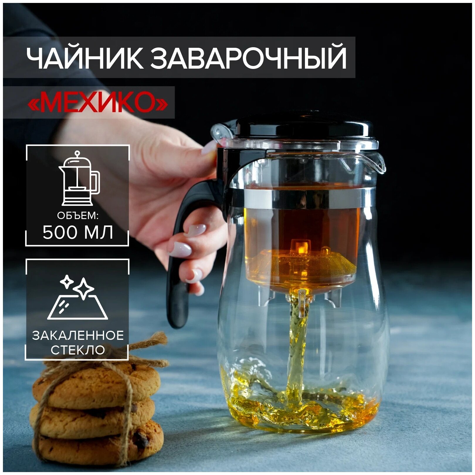 Заварочный чайник "Мехико", 500 мл, пластиковое сито, стекло интересное: