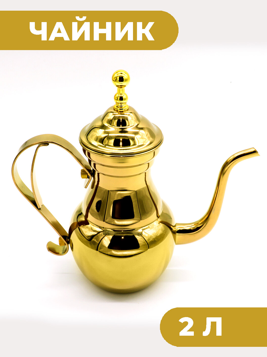 Чайник заварочный металлический Boomshakalaka, с ситечком, 2000 мл., цвет золотой