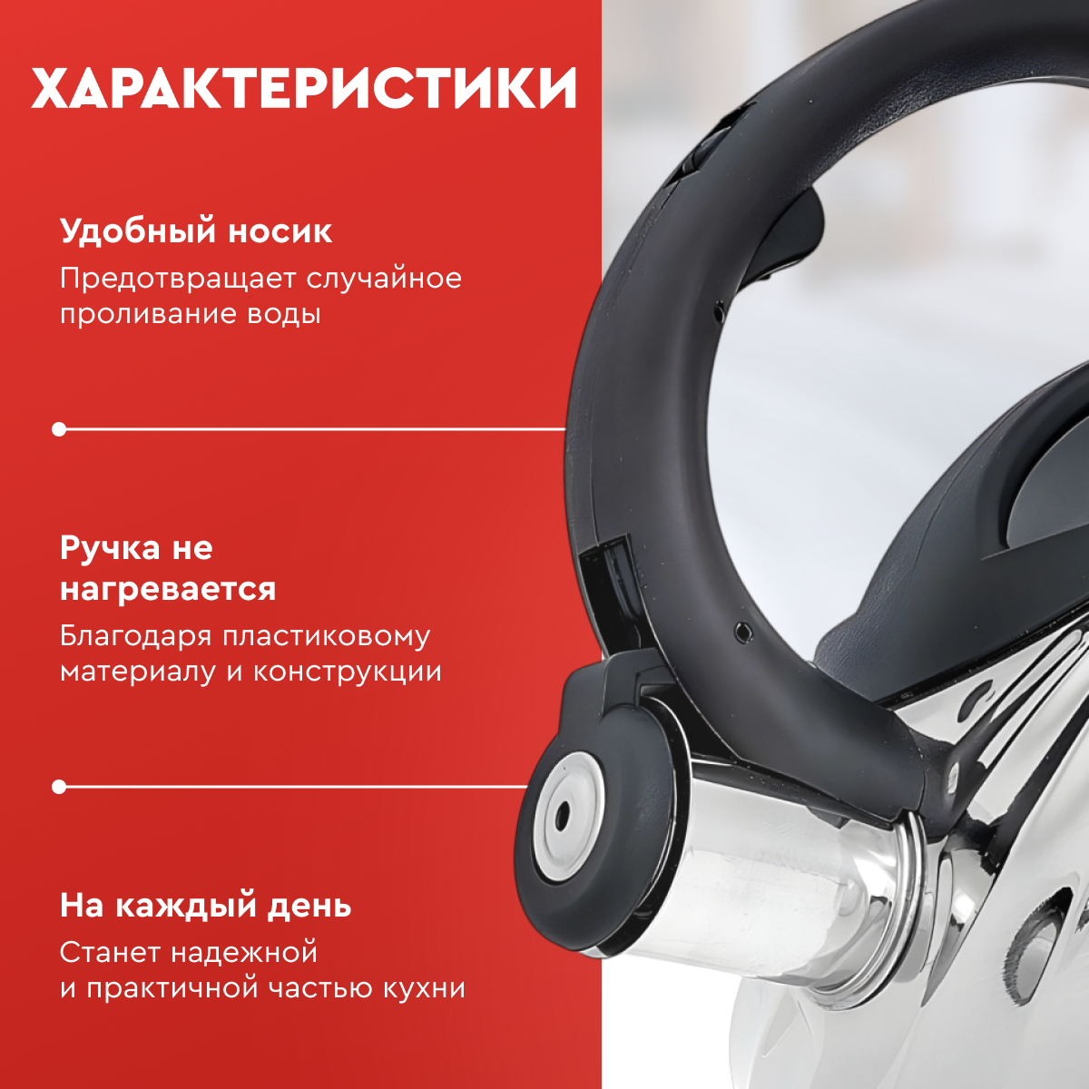 | Особенности | индукционное дно / со свистком / термоизолированная ручка / фильтр в носике |