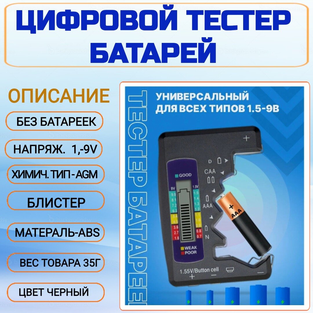 Тестер батарей, цифровой, черный, автоматическое выключение, 1 шт. интересное: