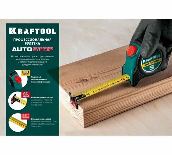 Рулетка KRAFTOOL AutoStop 5м / 19мм профессиональная с автостопом