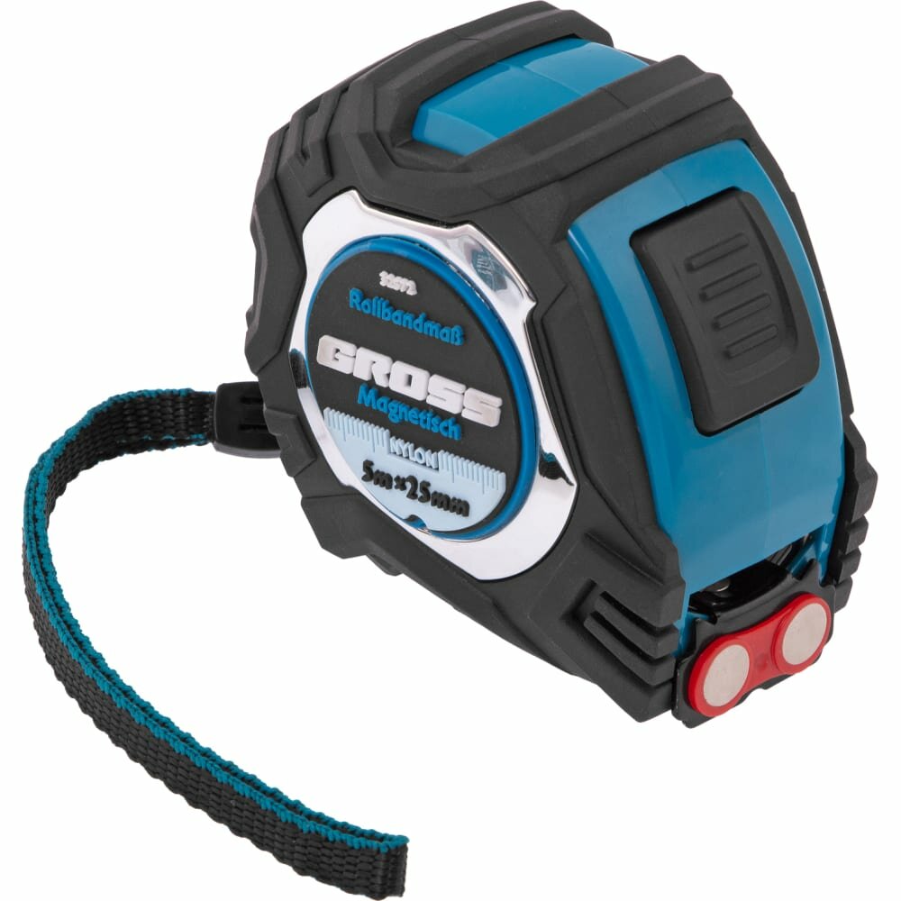 Рулетка Magnetisch 5 м х 25 мм,обрезиненный корпус,автоматическая фиксация,Нейлоновое покрытиеытие,зацеп с магнитом Gross