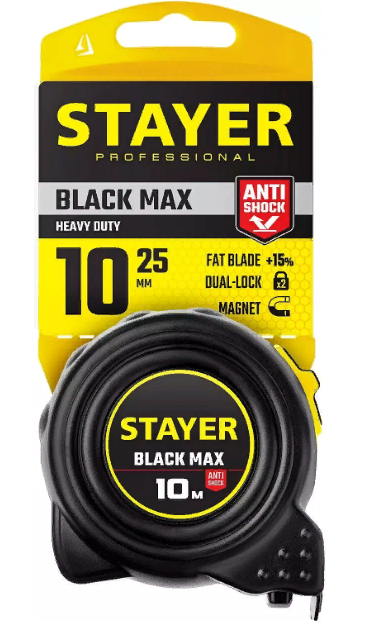 Рулетка Stayer BlackMax 10м / 25мм 3410-10_z02