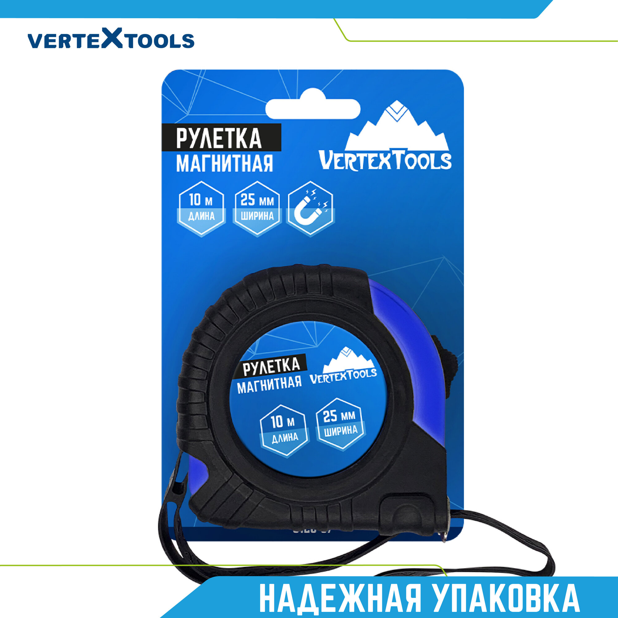 Купить Рулетка строительная 10м 25мм прорезиненная магнитная VertexTools