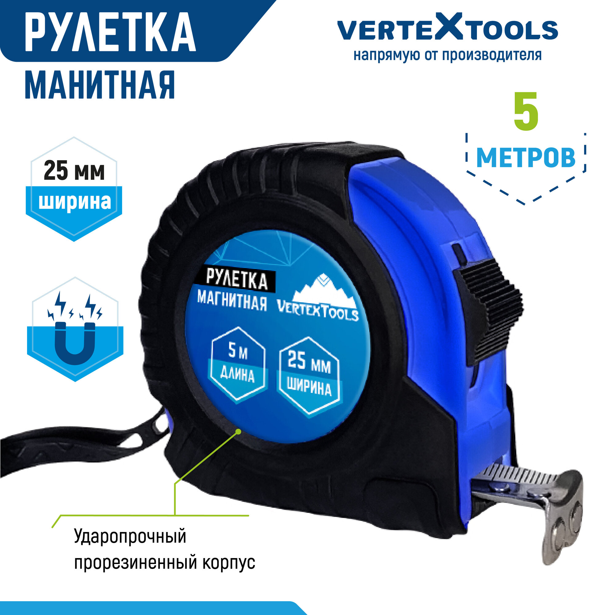 Рулетка строительная 5м 25мм прорезиненная VertexTools интересное: