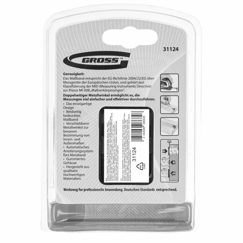 Рулетка Gross Doppelhaken 5 м x 19 мм, двухсторонний зацеп, нейлон, двуст. шкала, автоматич 31123
