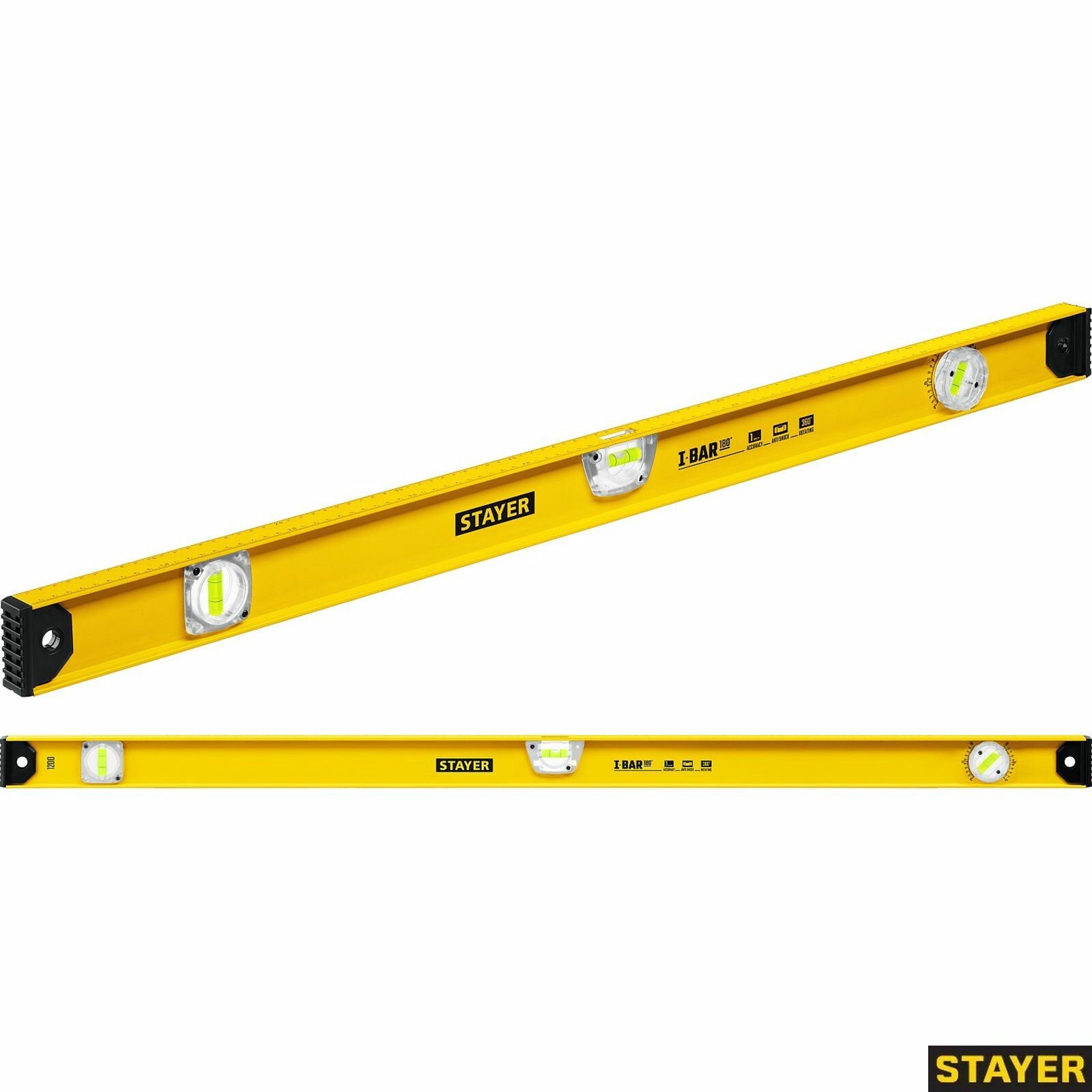 Купить Уровень STAYER I-Bar180 1200 мм двутавровый уровень, 3 глазка, линейка, поворотный глазок,