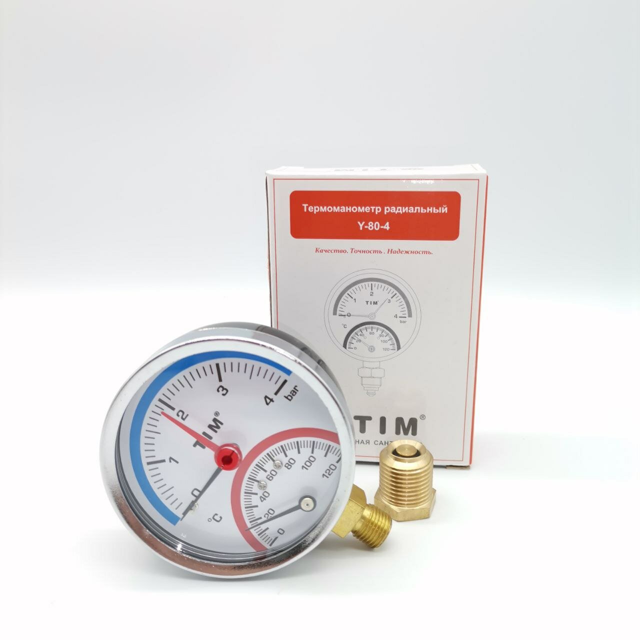 Термоманометр радиальный TIM Y-80-4 1/2" 4 бар