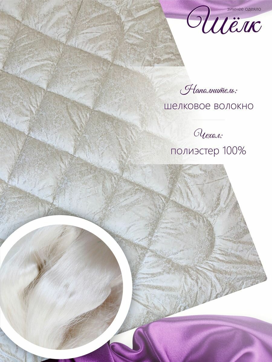 Одеяло двуспальное 172х205 см зимнее Шелк, теплое, стеганое, ткань чехла: тик