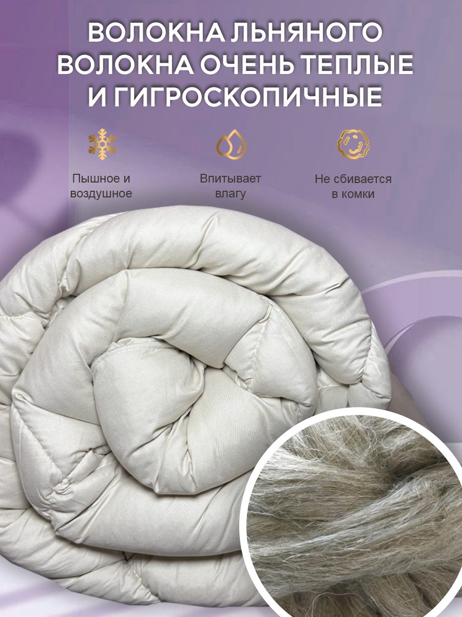 Одеяло 1.5 спальное 140х205 см зимнее Лён, теплое, стеганое, ткань чехла: тик