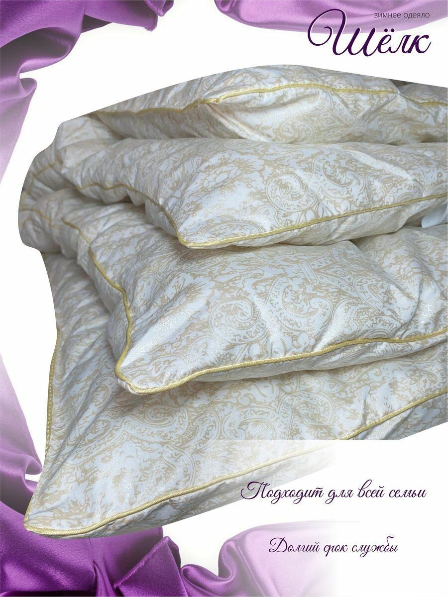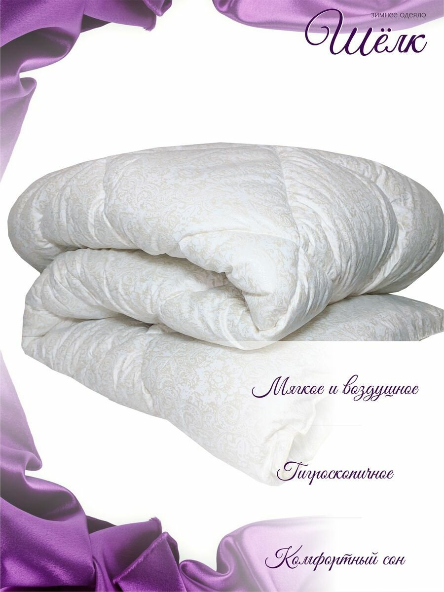 Одеяло 1.5 спальное 140х205 см зимнее теплое Шелк, теплое, стеганое, ткань чехла: тик