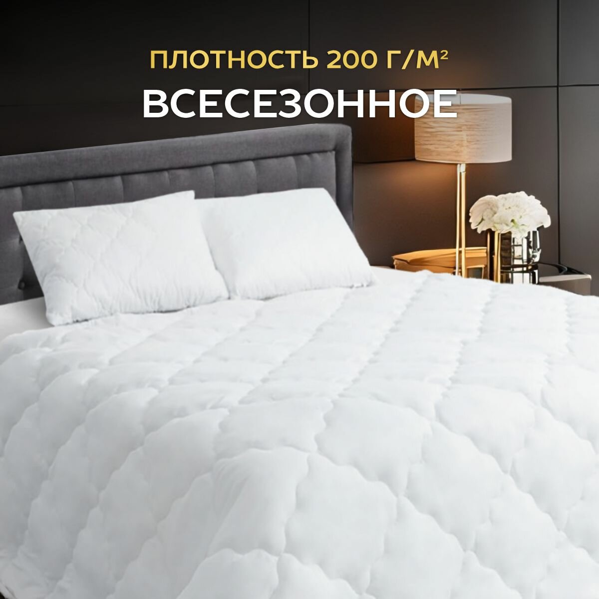 Одеяло Отельное лебяжий пух Кассетного типа 170х205 см, двуспальное 300гр/м2 / Horeca одеяло для отелей и гостиниц