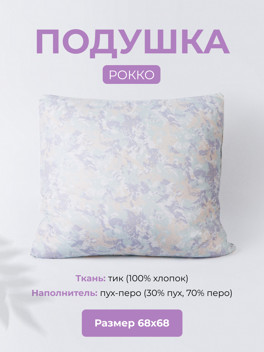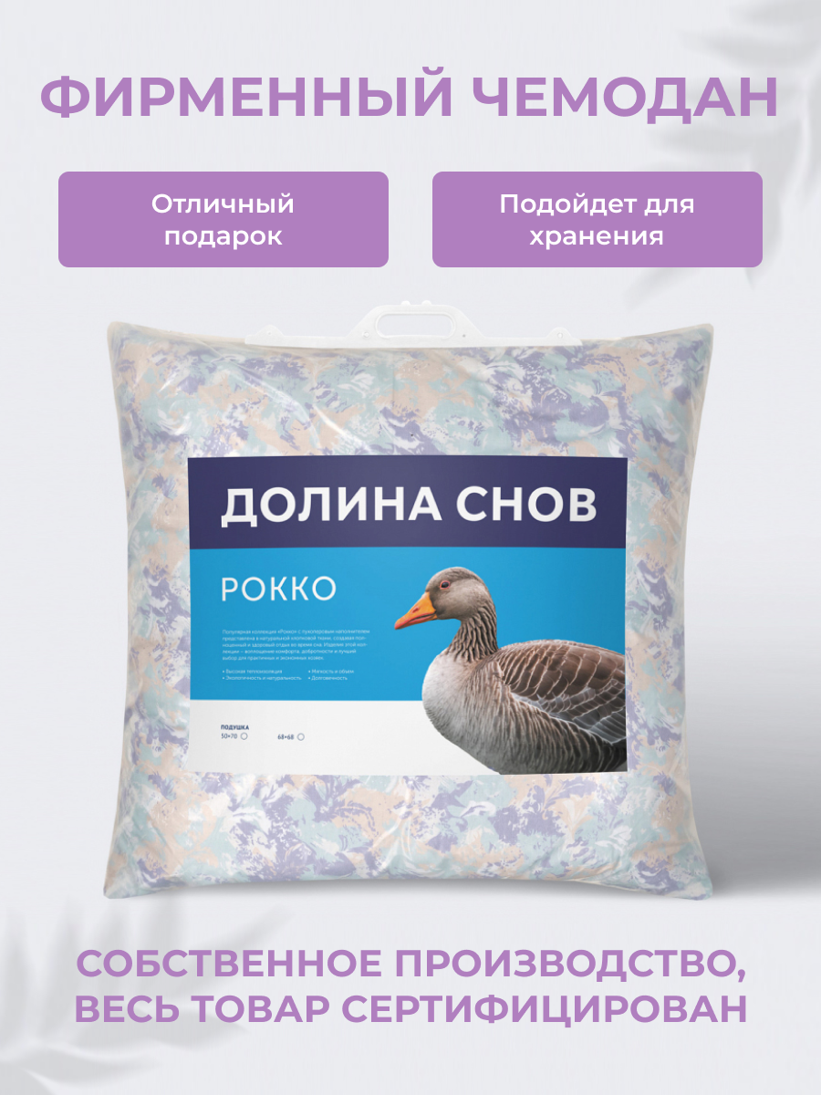 Подушка пух/перо 68x68 см Долина снов "Рокко", чехол - тик (100% хлопок), Ecotex интересное: