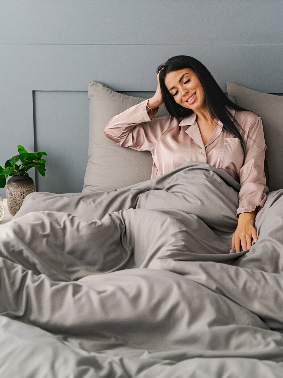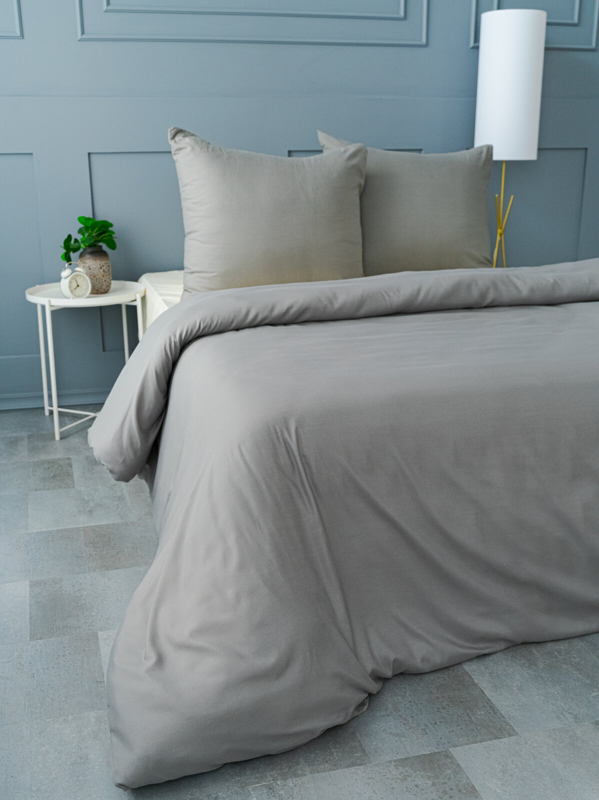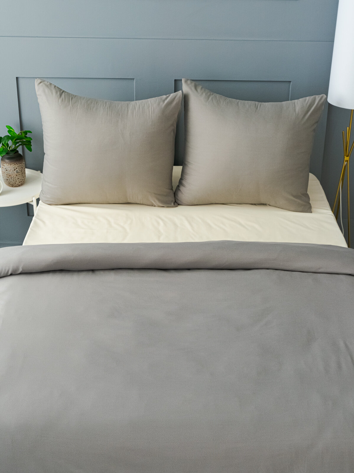Постельное белье евро Павлина Манетти полисатин однотонный, (серый/бежевый) S45