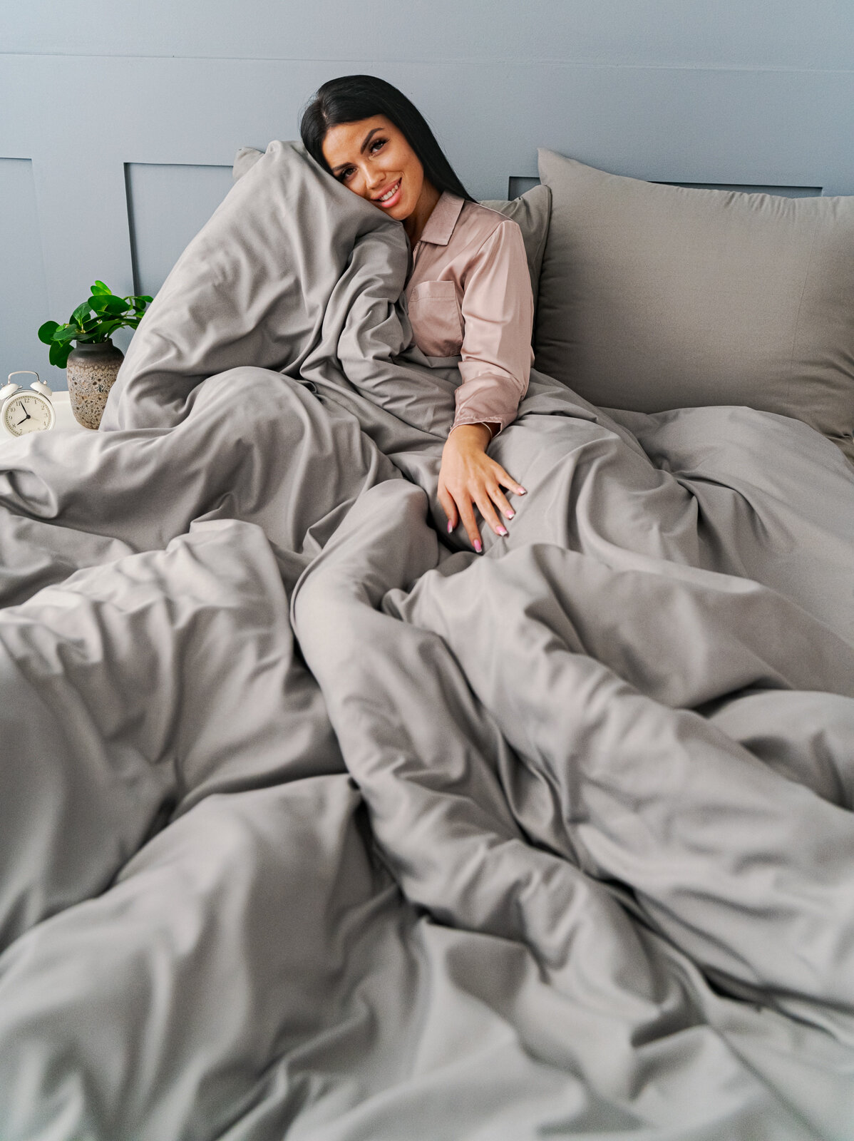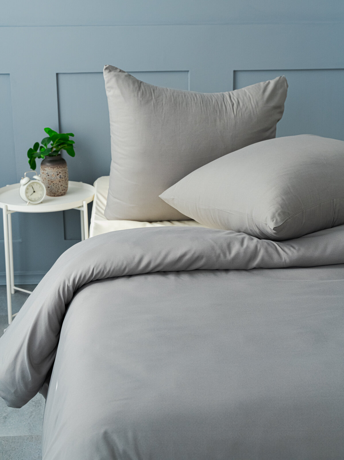 Постельное белье 1.5 спальное Павлина Манетти полисатин однотонный, (серый/бежевый) S45