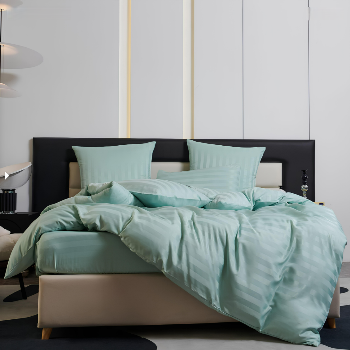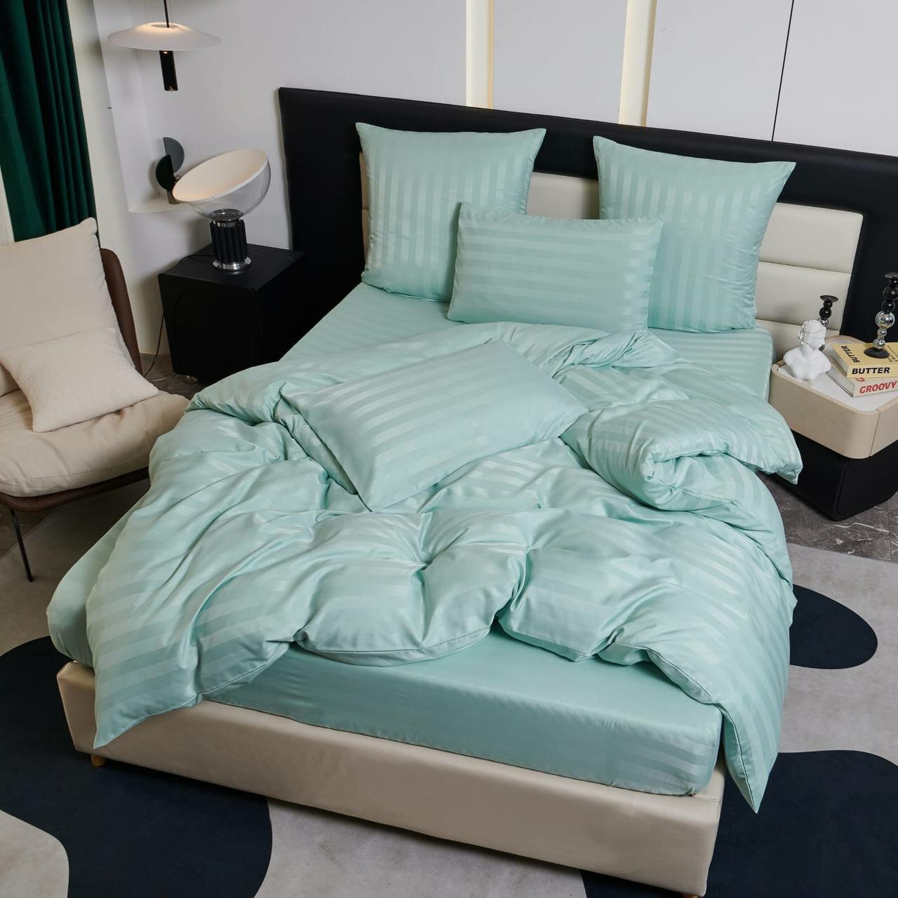 Постельное белье евро двуспальное зеленый BorisMency страйп сатин простынь на резинке 180x200+25, пододеяльник 200x220, наволочки 50x70-2, 70x70-2