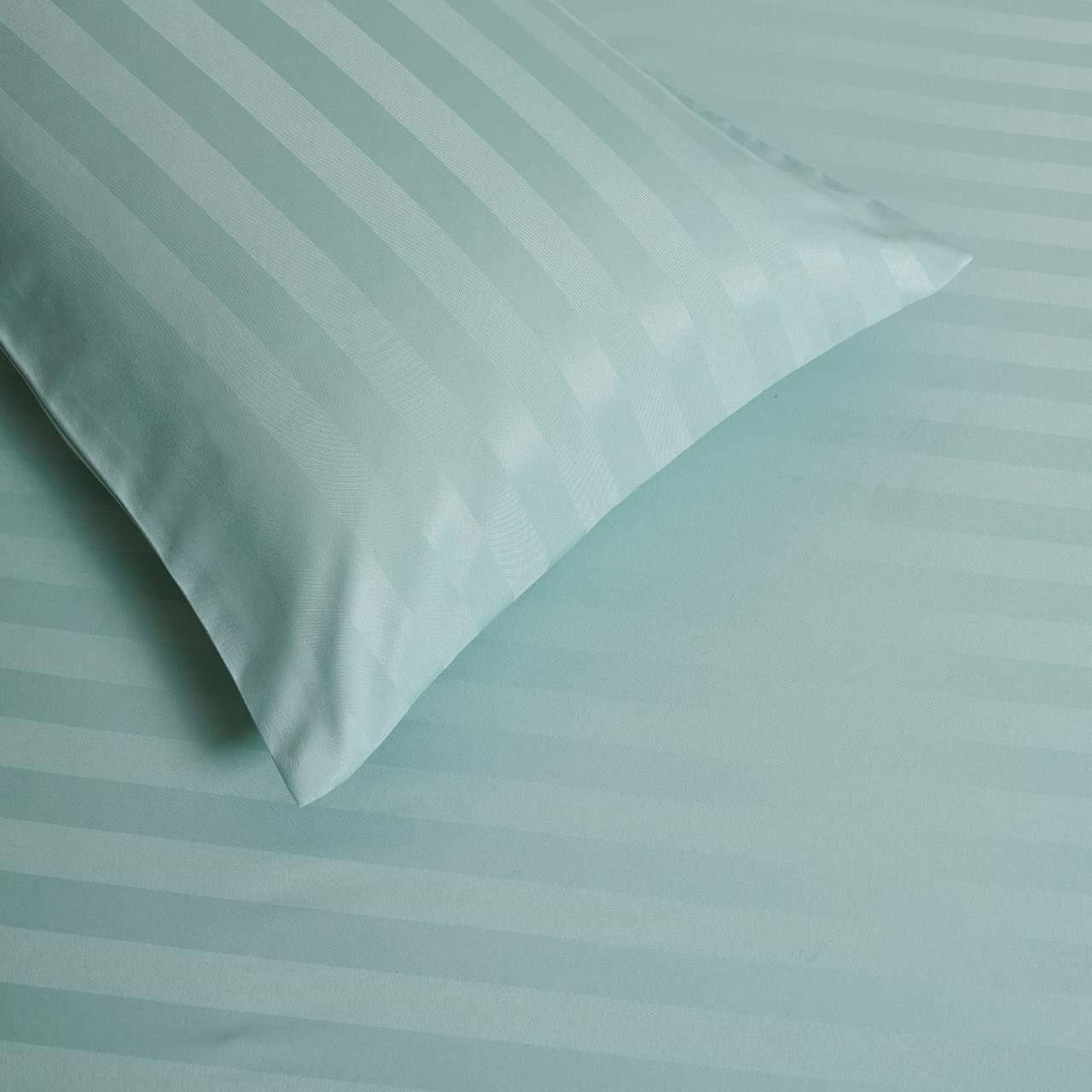 Купить Постельное белье евро 2-спальное фисташковый CandiesMency страйп сатин простынь на резинке 180x200+25